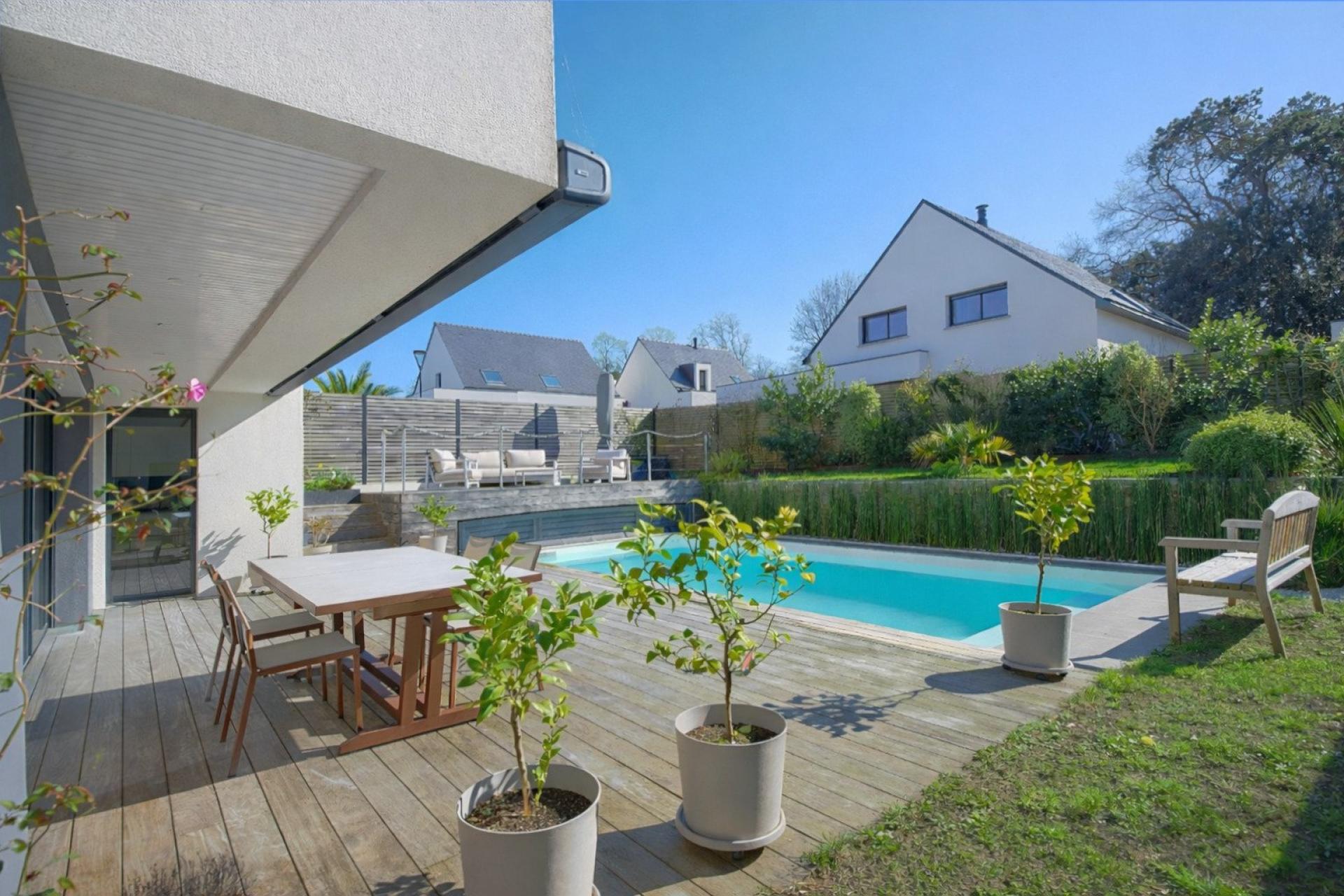 EXCLUSIVITÉ - SARZEAU CENTRE - A proximité immédiate du centre-ville de SARZEAU et de ses commerces accessibles à pied, découvrez cette maison contemporaine, d'environ 145 m2 habitable, construite en 2023, séduisante par son architecture moderne, ses prestations de qualité et son agencement parfaitement optimisé. Dès l'entrée avec placard, une spacieuse pièce de vie d'environ 60 m2, baignée de lumière grâce à de larges ouvertures, accueille salon et séjour. Agrémentée d'une cheminée avec insert, elle s'ouvre directement sur la terrasse et la piscine, offrant une belle continuité entre intérieur et extérieur. La cuisine A/E complétée par une arrière-cuisine fonctionnelle, prolonge harmonieusement cet espace convivial. Le rez-de-chaussée propose également une suite parentale avec dressing et salle d'eau, ainsi qu'un wc indépendant permettant une vie de plain-pied. A l'étage, une mezzanine dessert deux chambres avec rangements, une salle de bains avec baignoire et douche, un wc indépendant et un grenier aménageable (surface au sol d'environ 33 m2), offrant la possibilité de créer facilement une ou deux chambres supplémentaires. A l'extérieur, les aménagements invitent à la détente: terrasse avec store-banne, seconde terrasse surélevée et piscine 4X8. Garage avec porte motorisée, cave à vin enterrée et deux places de stationnement extérieurs complètent l'ensemble sur un terrain clos de 469m2. PAC aérothermie, chauffage au sol sur les deux niveaux, panneaux photovoltaïques, garantie décennale: un bien clé en main !