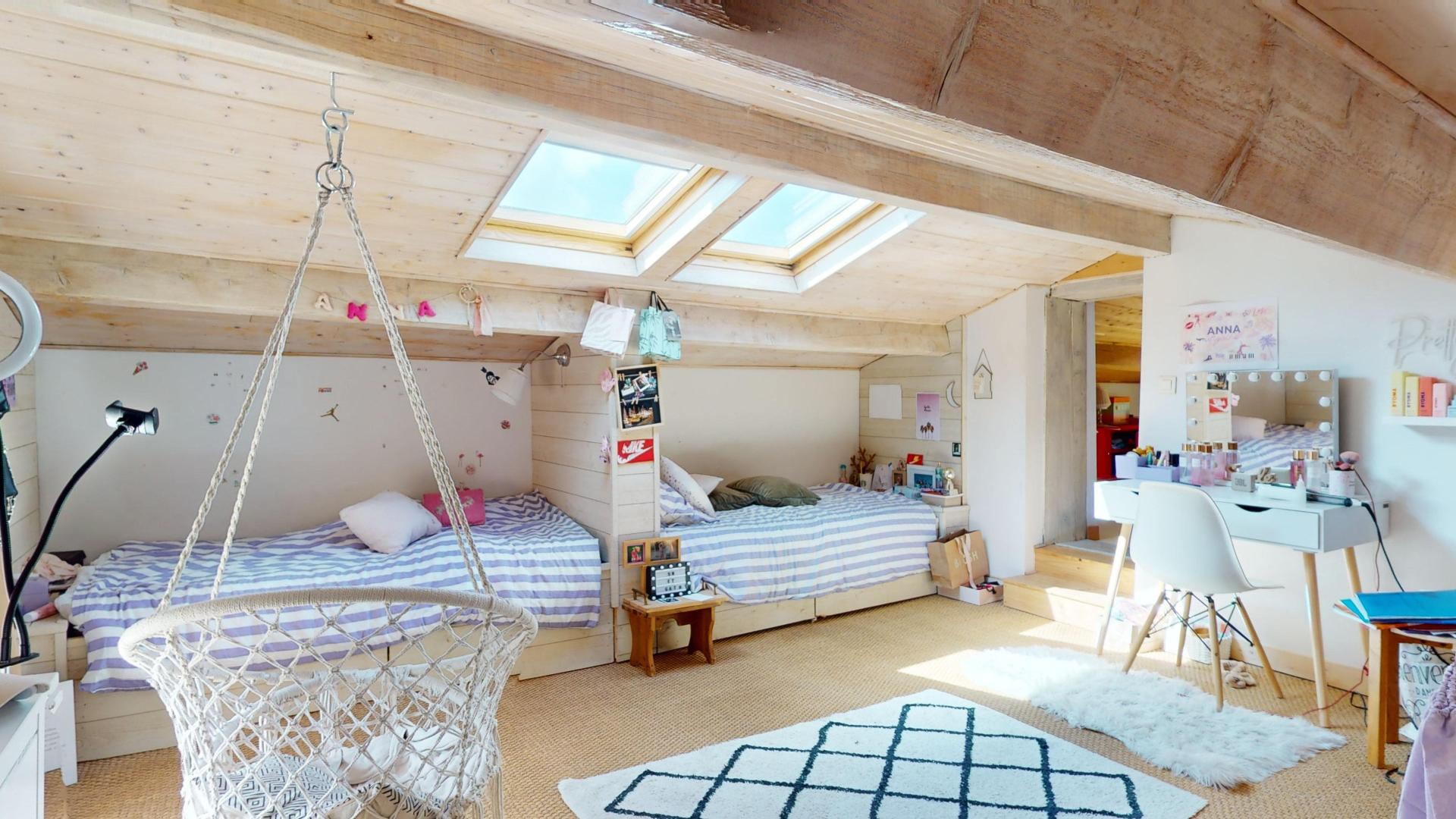 En exclusivité sur la commune de Sahonay-Village, je vous invite à découvrir cette belle maison d'environ 160m² sur son terrain clos et paysagé de plus de 800m² avec piscine. La modernité des équipements (panneaux photovoltaïques, Pompe à chaleur, création d'une suite parentale .... ) allie le confort et le charme de l'ancien.( tomettes, parquet, poutres ....) Vous serez séduit par les volumes et l'ambiance cosy de ce beau bien qui propose en RDC une cuisine équipée de plus 17 m², 1 espace salon/salle à manger de 31m² communicante avec la grande terrasse carrelée, 1 bureau et des toilettes. En demi niveau vous bénéficierez d'une belle suite parentale avec sa SDE et sa douche italienne, 1 grand dressing et 1 buanderie. Un demi niveau supérieur, distribue 2 généreuses chambres et 1SDB avec WC. Et au 2ème étage vous trouverez 1 grande chambre de plus de 18m² chaleureuse et très lumineuse avec de multiples ouvertures sur l'extérieur et en enfilade une 2ème pièce de 20m² pouvant faire office d'une salle de jeux ou d'une 5ème chambre . Le jardin paysagé offre 1 piscine avec une pompe à chaleur et un volet roulant électrique. Un petit garage complète le tout Cette belle maison pleine d'atout n'attend plus que vous !