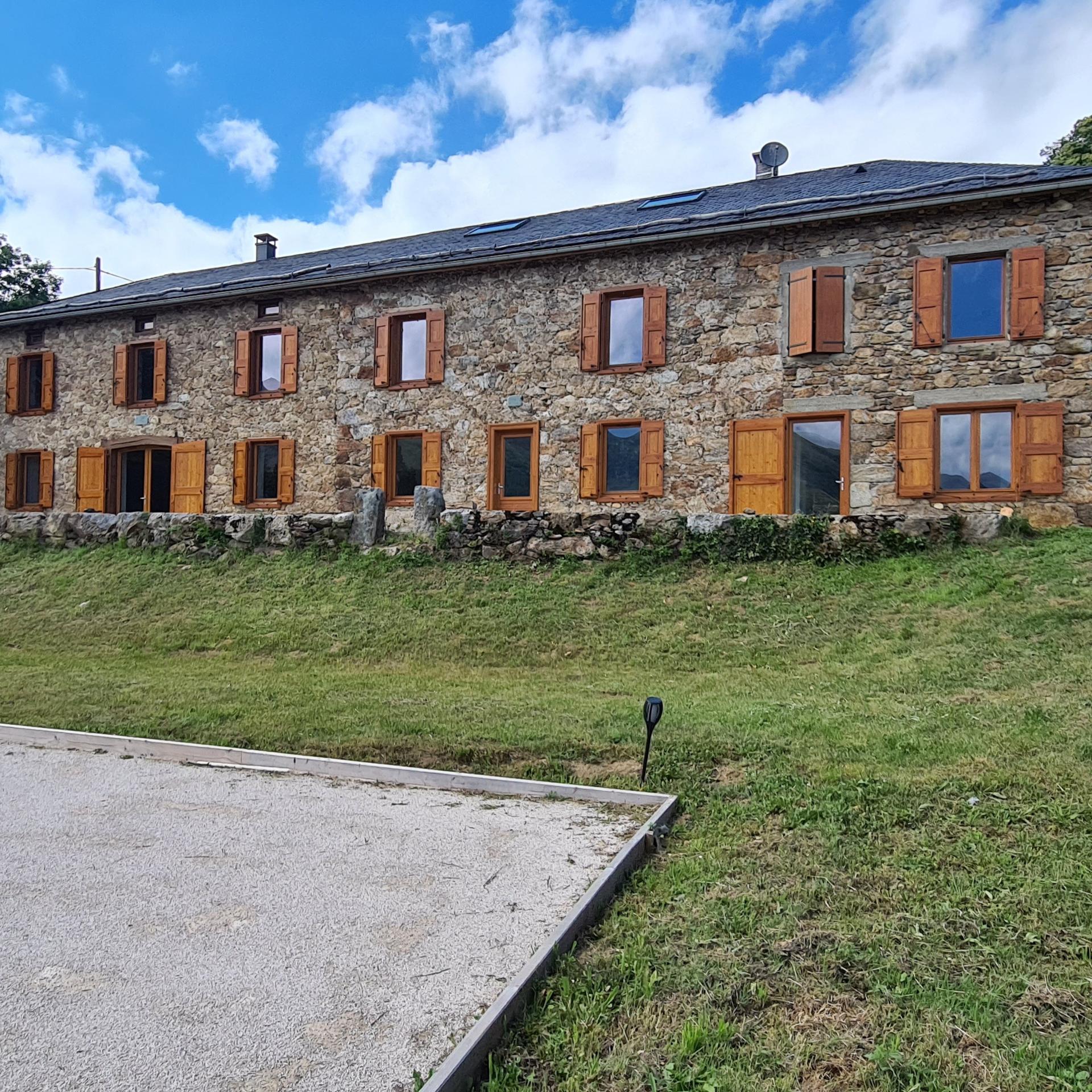 ARIEGE - FOIX à 20minutes - SAURAT Ferme d'habitation accompagnée de deux granges d'environ 80m² chacune et d'une petite maisonnette d'environ 10m² pour animaux ou matériel d'entretien. Edifiée sur plus de 3 ha, à 1000 mètres d'altitude, la propriété jouit d'un environnement sauvegardé. Vue dégagée sur les montagnes Pyrénéennes, profitant d'un ensoleillement du lever au coucher, elle bénéficie d'un cadre particulièrement privilégié. À 1heure et demi de Carcassonne, à 1 heure de Toulouse, 20 minutes de Foix, un quart d’heure de Tarascon, à seulement 10 minutes des premiers commerces de proximité et du Col de Port, elle allie accessibilité aux commodités et tranquillité, loin de l’agitation quotidienne. C'est en 2015 que débutent les travaux de rénovation par notre propriétaire, passionné de terroir et de montagne. Toiture en ardoise, murs de pierres, isolation, chauffage à granulés, insert 4 faces...une volonté de faire usage de matériaux nobles (chêne, mélèze, hêtre) en respectant l'esprit montagnard des anciens et en veillant à optimiser les espaces. Elle se compose : Sur près de 300m², au rez de chaussée : Un séjour et premier salon cheminée à foyer ouvert, un second salon particulièrement confortable avec son insert 4 faces en son centre, cuisine spacieuse très lumineuse. Chacune de ces pièces donne sur la terrasse et offre une vue imprenable sur les terres qui entourent notre corps de ferme. Sur ce même niveau, une buanderie, 1 toilette, une pièce de rangement et le local chaufferie. à l'étage : 4 chambres dont une suite parentale, 2 salles d'eau dont une avec douche et baignoire, 2 wc. Il reste un bel espace combles à aménager, resté en poutres apparentes. Au tout dernier niveau : un dortoir avec wc en cours de finition. Viennent agrémenter notre bâtisse : un terrain de pétanque, un bois, un potager et verger, un bassin à truites (la propriété étant traversée par un ruisseau), une carrière à chevaux et de jolis près. Nombreux arbres viennent d'être plantés accueillant nombreuses espèces d'oiseaux de passage. Un investissement de choix où l'émotion a toute sa place !