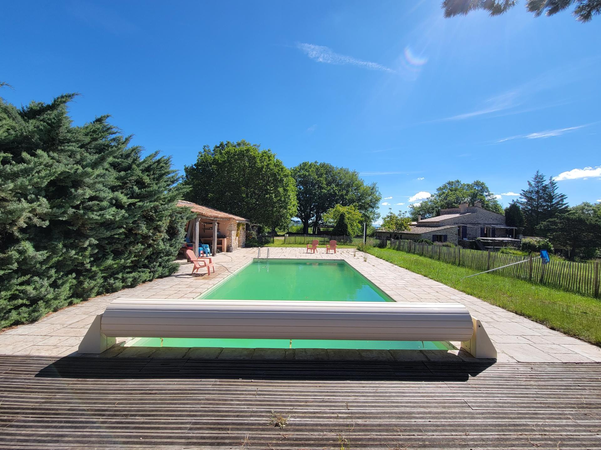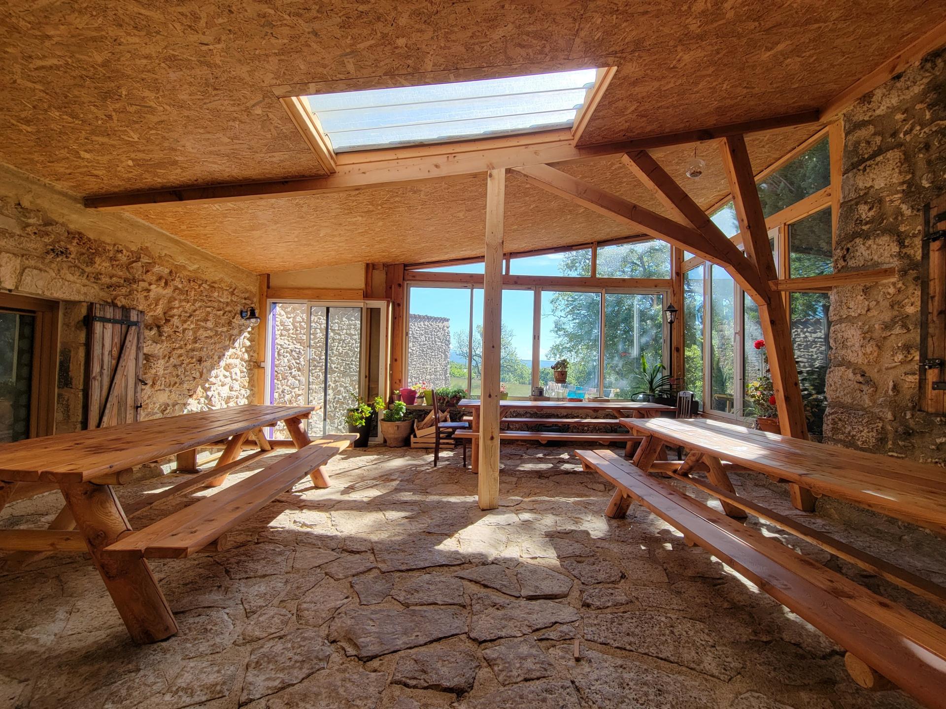 Située dans le parc naturel du Luberon, à proximité de Banon, au milieu des chênes, de larges prairies, d’une multitude d’arbres fruitiers et de la garrigue, venez découvrir cette magnifique propriété de 20 hectares et son mas d’environ 500 m². Au calme absolu, bénéficiant de magnifiques vues sur la campagne et sur la Lure, la propriété offre de multiples possibilités pour organiser tout type d’événements : des mariages, des locations saisonnières, des gîtes à la ferme, mais aussi un lieu de bien-être. L'habitation principale d’environ 260 m² s’articule autour : - d'un séjour salle à manger ouvrant sur une magnifique terrasse et ses tables en pierres de Banon. - d'une cuisine équipée. - d’une 2ème salle à manger pleine de charme avec son sol en pierres et son poêle à bois. - de 6 grandes chambres (17m², 26m², 12m², 17m², 16m² et 17m²) disposant chacune d'une salle de bains et d’un WC. A l’abri dans un écrin de verdure, à 100 mètres de l’habitation principale, un bâtiment d’environ 200m² est parfaitement adapté pour l’organisation d’une multitude d’activités. Il se compose : - d’une immense pièce de 140m² - de 4 chambres. - de 2 douches et 2 WC. Autour de la piscine, 2 nouvelles chambres avec salle de bain et WC permettent d’étendre les possibilités de recevoir amis ou public. Une immense terrasse en bois de 200m² ouverte sur la campagne se prêtera idéalement à des activités de danse ou de musique. Le chauffage de l’habitation principale est assuré par une chaudière à gaz à condensation performante datant de 2019. L’annexe de 200m² est chauffée par 4 blocs de climatisation. Assainissement autonome récent, cuve de récupération des eaux de pluie de 120m3, garage en bois et atelier, plusieurs caves et de nombreuses autres surprises…