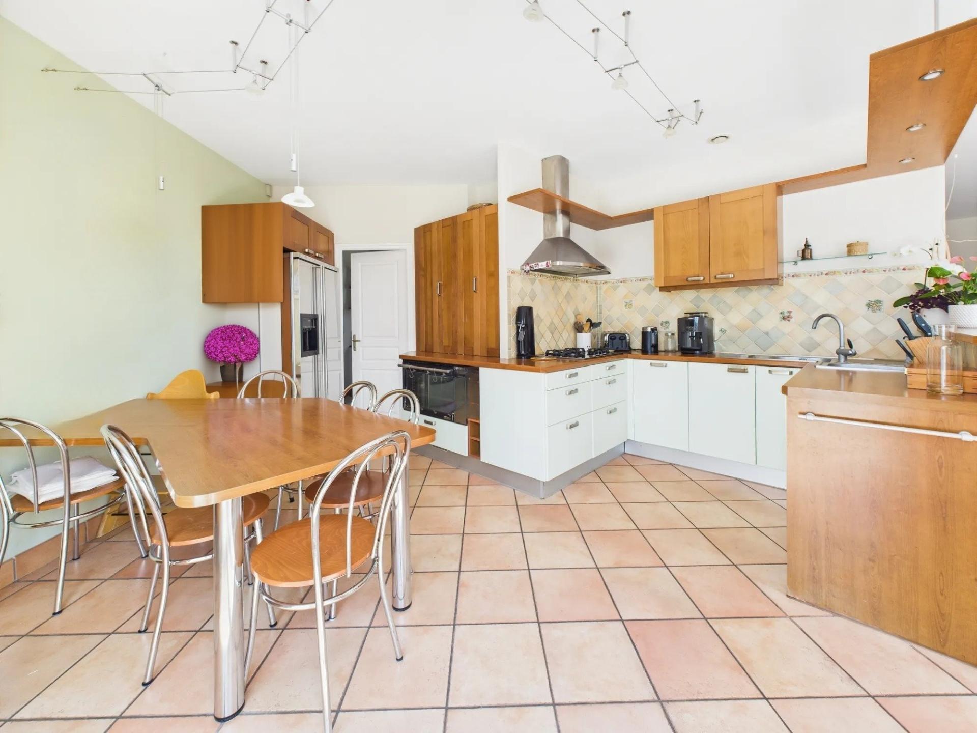 La cuisine ouverte, parfaitement aménagée et équipée, invite à la convivialité et au partage.