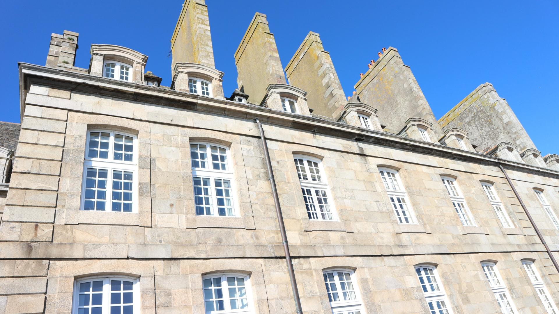 SAINT-MALO INTRA-MUROS — Au pied des remparts et des plages, côté cale de Dinan, cet appartement de caractère de 218 m² bénéficie d’un emplacement d’exception au sein d’une petite copropriété avec ascenseur. Exposé sud-ouest, il profite d’une luminosité remarquable au dessus des remparts et offre de superbes vues dégagées sur Dinard et le port. Il se compose de cinq chambres, de deux salons de réception, d’une cuisine indépendante aménagée, de trois salles d'eaux et de deux toilettes. Ses volumes généreux se prêtent idéalement à une résidence principale familiale ou à un élégant pied-à-terre. Des aménagements adaptés aux personnes à mobilité réduite assurent un confort optimal. Un garage privatif, une cave et un vaste grenier complètent ce bien rare en Intra-Muros. Façade en pierre et toiture en ardoise lui confèrent un charme authentique. À proximité immédiate des commerces, transports, établissements scolaires et du littoral.