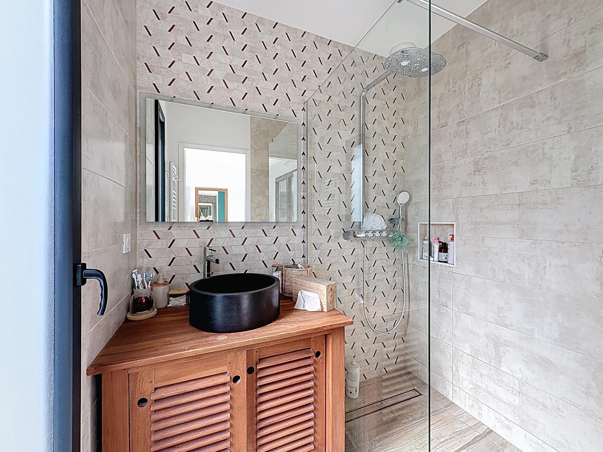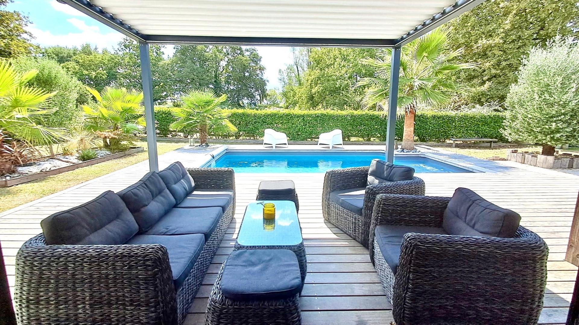 Située à Saint-Sulpice-et-Cameyrac (33450), cette maison bénéficie d'un emplacement idéal proche du golf et dans un environnement calme, offrant intimité et qualité de vie. Avec 2 places de parking et un magnifique terrain paysagé d'environ 1 100 m2, cette maison de 135m2 lumineuse et récente est prête à accueillir ses nouveaux propriétaires. À l'extérieur, les atouts ne manquent pas : une allée en enrobé, une pergola bioclimatique, une terrasse couverte, une terrasse en bois exotique, une piscine chauffée, le tout dans un jardin paysagé sans vis-à-vis, offrant un cadre de vie agréable et propice à la détente. À l'intérieur, cette maison de 5 pièces se compose d'une pièce de vie lumineuse s'ouvrant sur une cuisine moderne, 3 chambres dont une suite parentale avec dressing et salle d'eau, un bureau, 2 salles de bain, 2 toilettes, et un garage non attenant de 19m2. Avec des équipements tels que le chauffage au sol, la climatisation réversible et des moustiquaires intégrées, le confort est optimal. Une garantie dommages-ouvrage de 2020 assure la qualité de cette maison familiale.