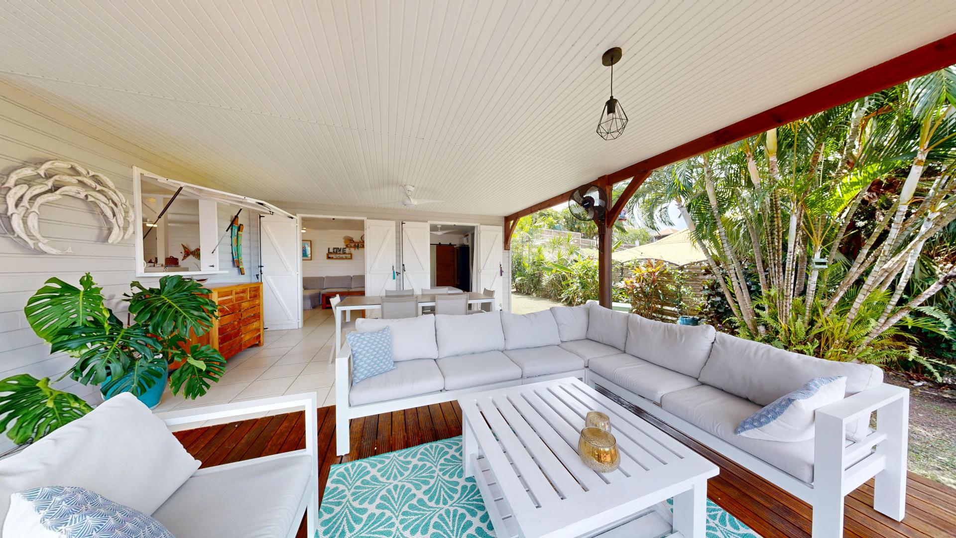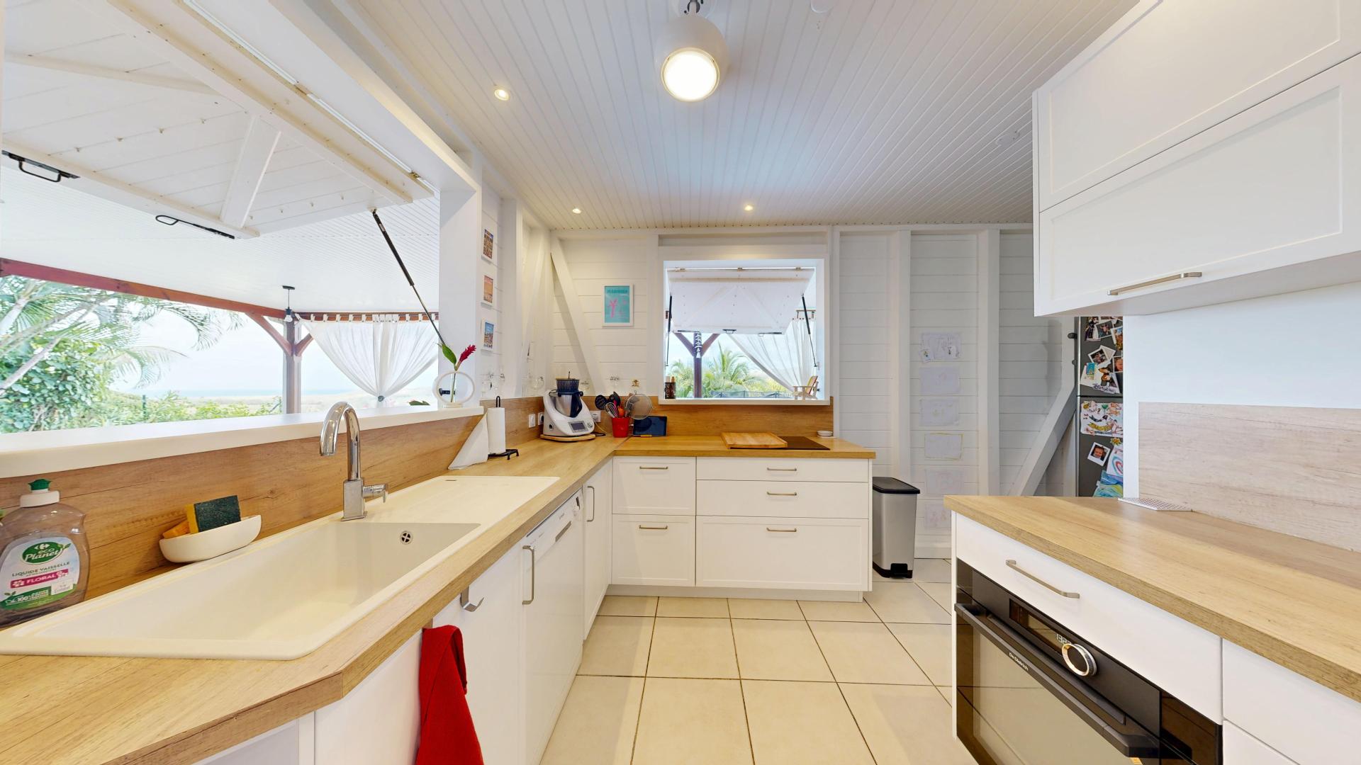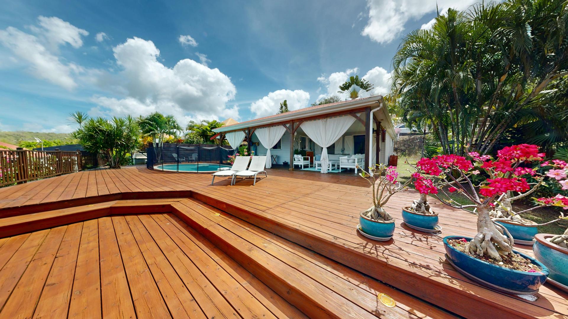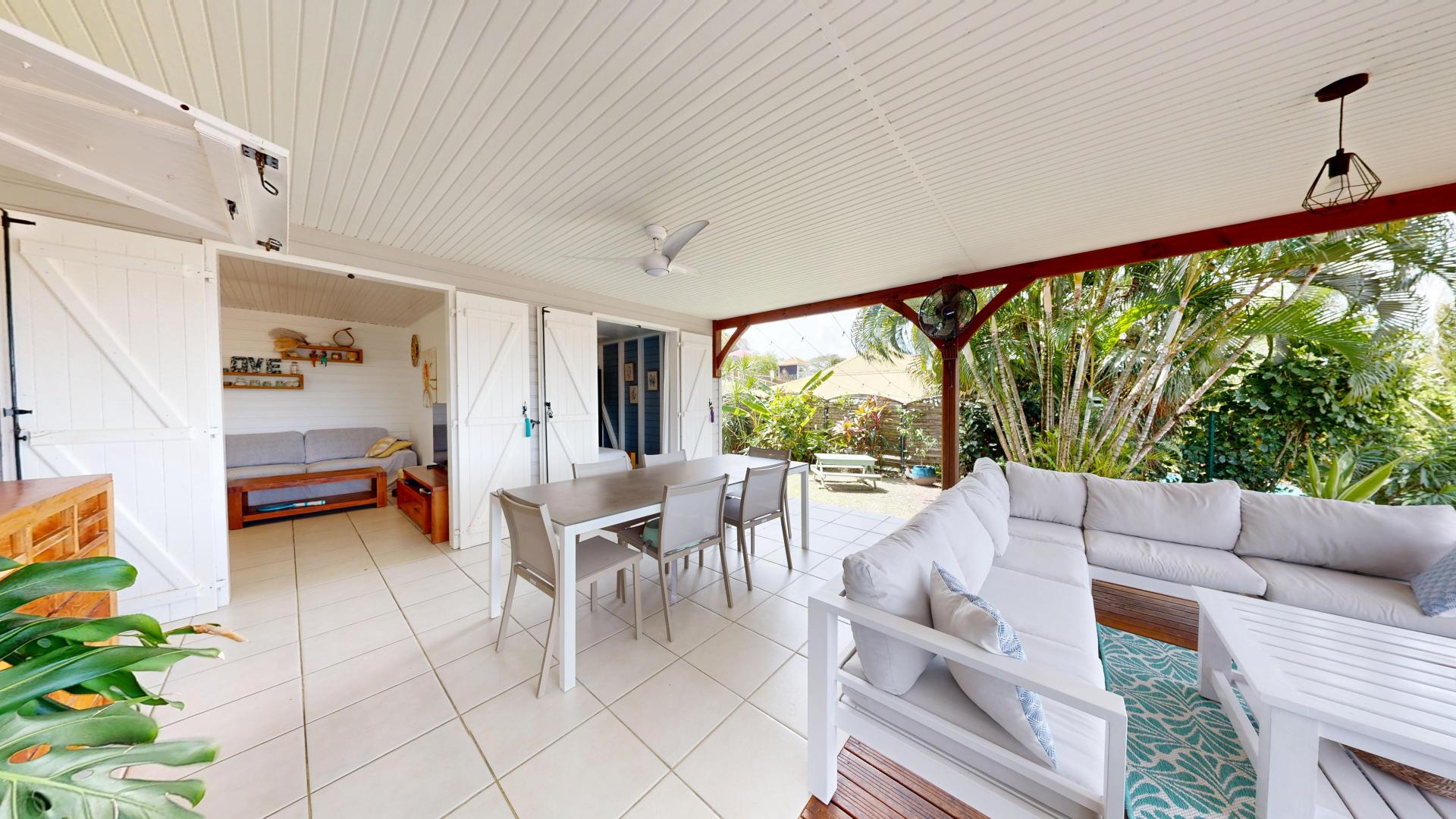 Bertrand Tissier vous propose en exclusivité cette charmante maison située au cœur du lotissement prisé de Filao à Sainte-Luce. Dès l’entrée, vous serez séduit par une agréable pièce à vivre lumineuse, ouverte sur une cuisine récente et fonctionnelle, idéale pour partager des moments conviviaux. Une arrière-cuisine vient compléter cet espace pour plus de praticité au quotidien. L’espace nuit se compose de trois chambres confortables, d’une salle de bain, ainsi que d’une belle suite parentale avec sa propre salle d’eau, offrant intimité et confort. À l’extérieur, vous profitez d’une grande terrasse couverte, parfaitement aménagée avec un espace salon et un coin repas, propice à la détente et aux moments en famille ou entre amis. Une piscine vient parfaire cet espace extérieur, sublimé par un deck en bois chaleureux. L’ensemble est en excellent état et offre une vue exceptionnelle sur la mer, le sommet du Rocher du Diamant ainsi que sur la célèbre Femme Couchée. Située dans un quartier recherché, cette maison allie confort, charme et cadre de vie privilégié. Une opportunité rare à découvrir sans tarder ! Visite 3D sur demande