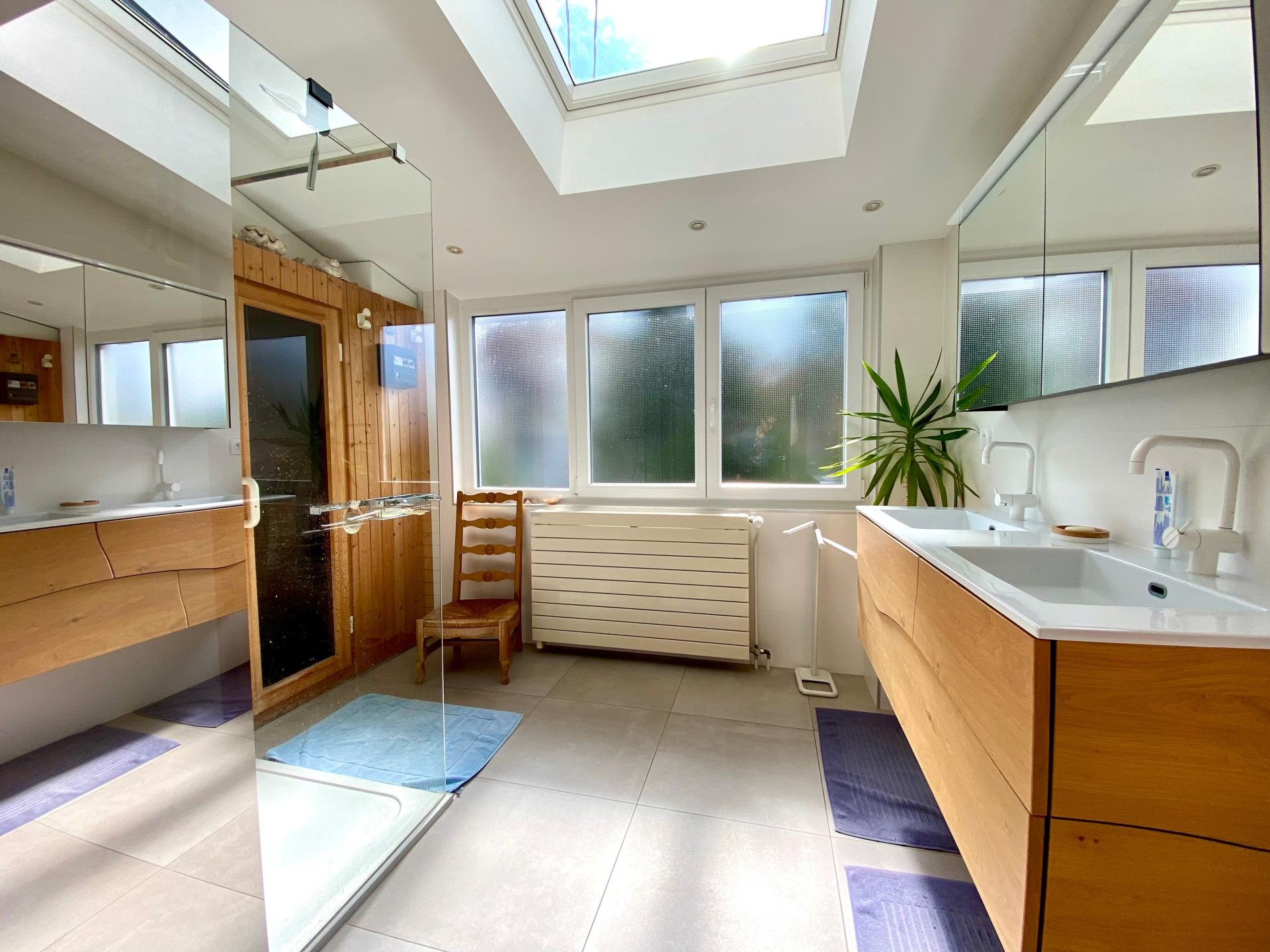 À Strasbourg, aux portes de Lingolsheim et Eckbolsheim, découvrez cette maison de caractère des années 30, nichée dans un écrin de verdure au bord de la Bruche. Sur un terrain arboré de 6,64 ares, elle offre 219 m² habitables (env. 250 m² au sol) et un cadre de vie rare, à l’abri des regards. Au rez-de-chaussée : vaste entrée avec espace bureau, double séjour baigné de lumière avec bow-window, véranda chauffée et accès jardin, cuisine équipée avec cellier, WC séparés. Au 1er étage : suite parentale avec salle d’eau rénovée et sauna, deux chambres supplémentaires, un bureau, salle de bains familiale, WC séparés. Les combles : grand espace ouvert avec mezzanine, chambre avec salle d’eau privative et WC. Sous-sol complet : garage, buanderie, cave à vin, rangements, chaufferie (chaudière gaz condensation neuve). Jardin : arbres fruitiers, terrasse couverte, emplacement piscine hors sol. ✅ Prestations récentes : chaudière, tableau électrique et volets aluminium remplacés. ✅ DPE : D – consommation de gaz 2024 : env. 3 400 €. Une maison alliant charme de l’ancien, volumes généreux et cadre bucolique, idéale pour une famille recherchant calme et nature.