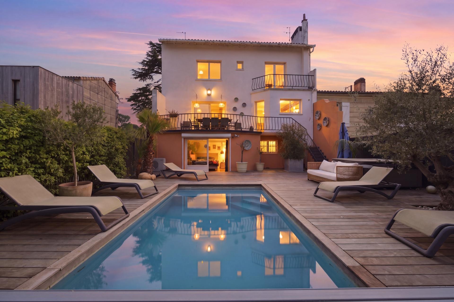 Idéalement située, cette élégante maison des années 50, prend place dans une rue recherchée, à proximité immédiate des écoles, des commerces et des transports en commun. Le secteur est particulièrement prisé pour sa qualité de vie familiale, avec la proximité d’établissements scolaires réputés. Rare sur le secteur, la maison dispose d’un garage et s’élève sur trois niveaux, offrant des volumes généreux et une distribution parfaitement pensée. Le rez-de-chaussée accueille une superbe suite parentale d’environ 65 m², véritable espace indépendant, alliant confort et intimité. Au premier étage, vous découvrirez une magnifique pièce de vie de presque 70m2, baignée de lumière et décorée avec beaucoup de goût, prolongée par une agréable terrasse. Le dernier niveau propose quatre chambres chaleureuses, une salle de bain et des toilettes. À l’extérieur, vous profiterez d’un jardin paysager d’environ 200 m², véritable havre de paix, agrémenté d’une piscine, d’une cuisine d’été et d’un charmant cabanon aménagé