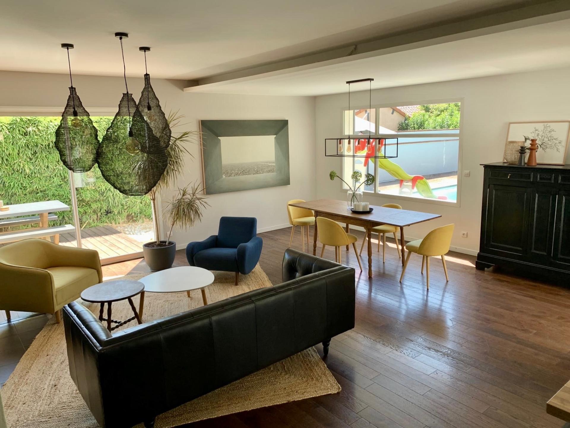 Au coeur d'un secteur calme et résidentiel, grande maison contemporaine de 175 m2 construite en 2006 sur un terrain de 566 m2. Le rez-de-chaussée comprend une grande pièce de vie lumineuse, une cuisine ouverte équipée, wc avec lave-mains, une buanderie, une chambre avec dressing et salle d'eau. A l'étage une suite parentale avec dressing et accès terrasse, deux chambres avec placards, un bureau (ou chambre). Salle de bains et wc séparés à l'étage. Fenêtres pvc double vitrage / volets roulants électriques Climatisation Poêle à bois L'extérieur comporte plusieurs espaces : . Une belle terrasse donnant sur le jardin arboré . Une piscine 7x3m avec eau salée De très belles prestations pour cette maison au charme moderne et chaleureux. Tout est pensé pour vivre très confortablement au quotidien. Des espaces pour chacun, à l'intérieur comme à l'extérieur. Coup de coeur !