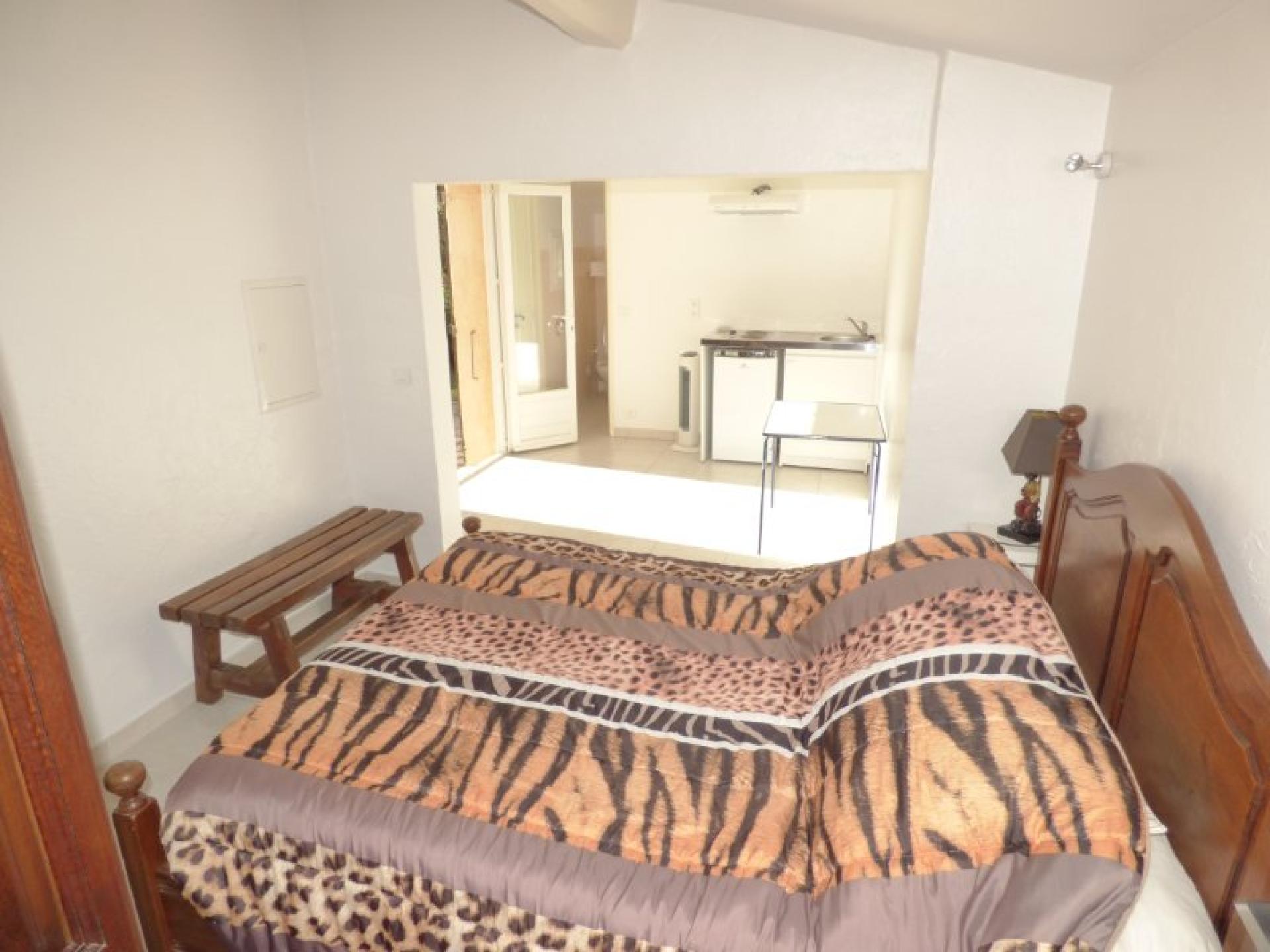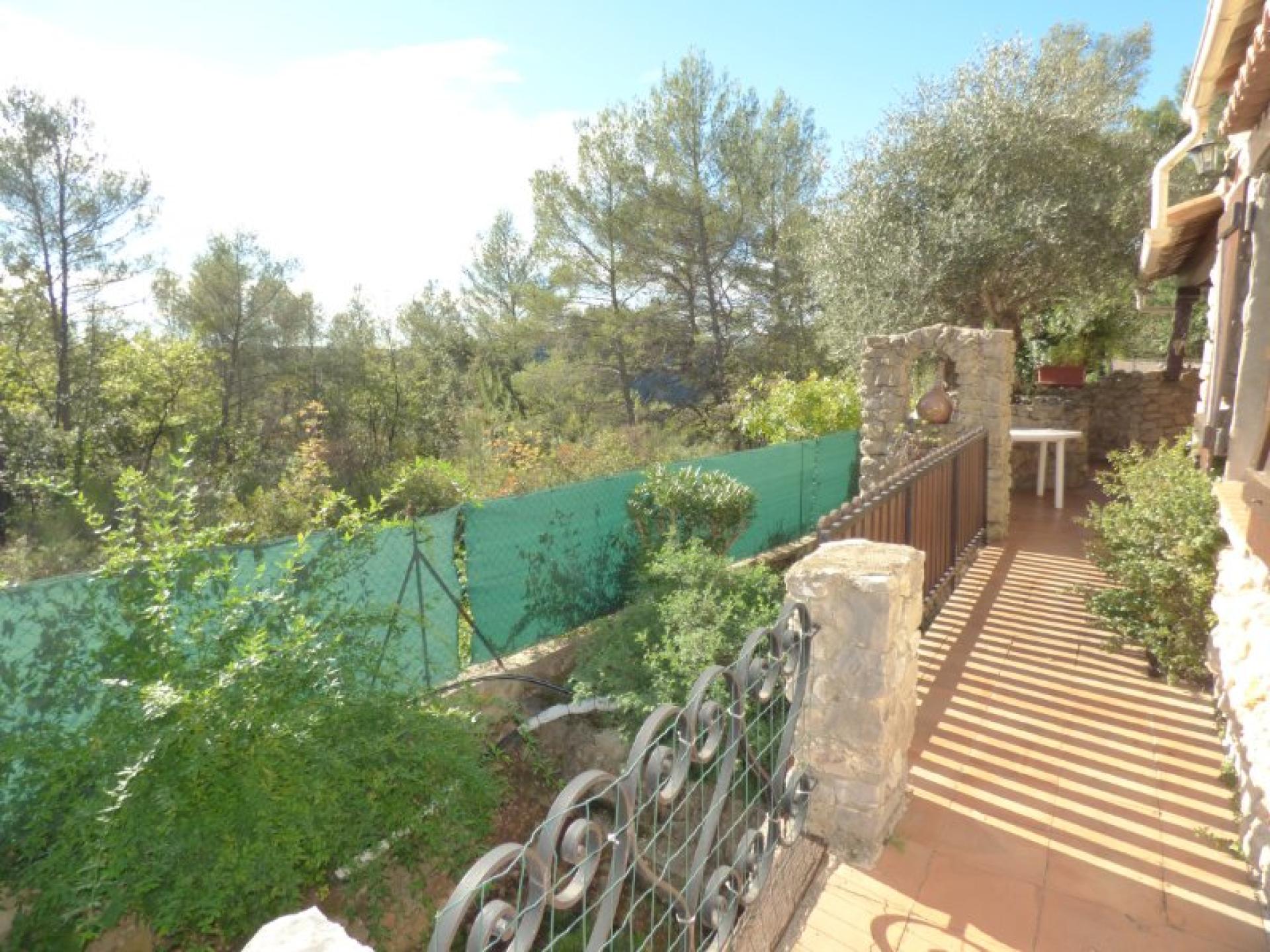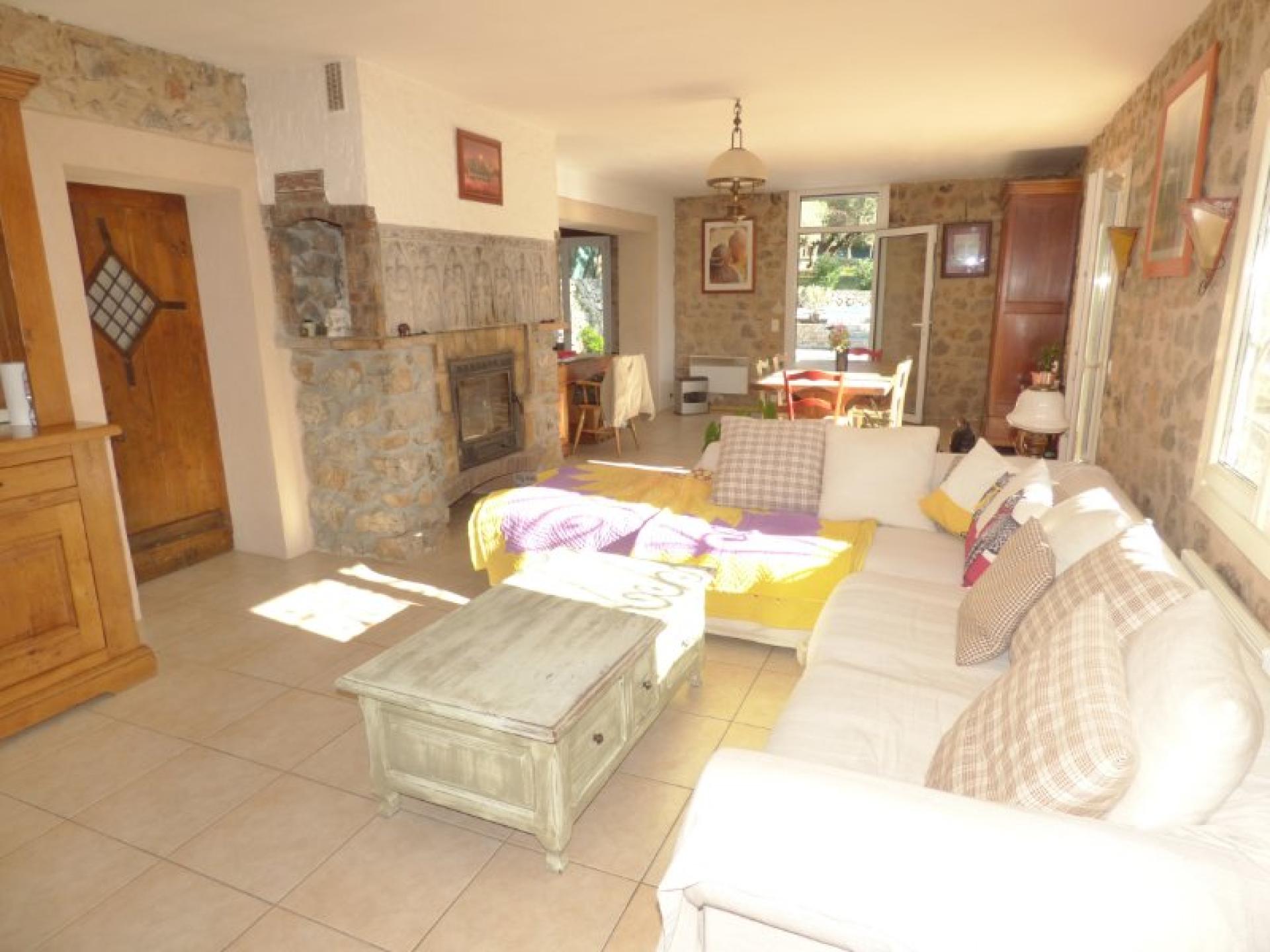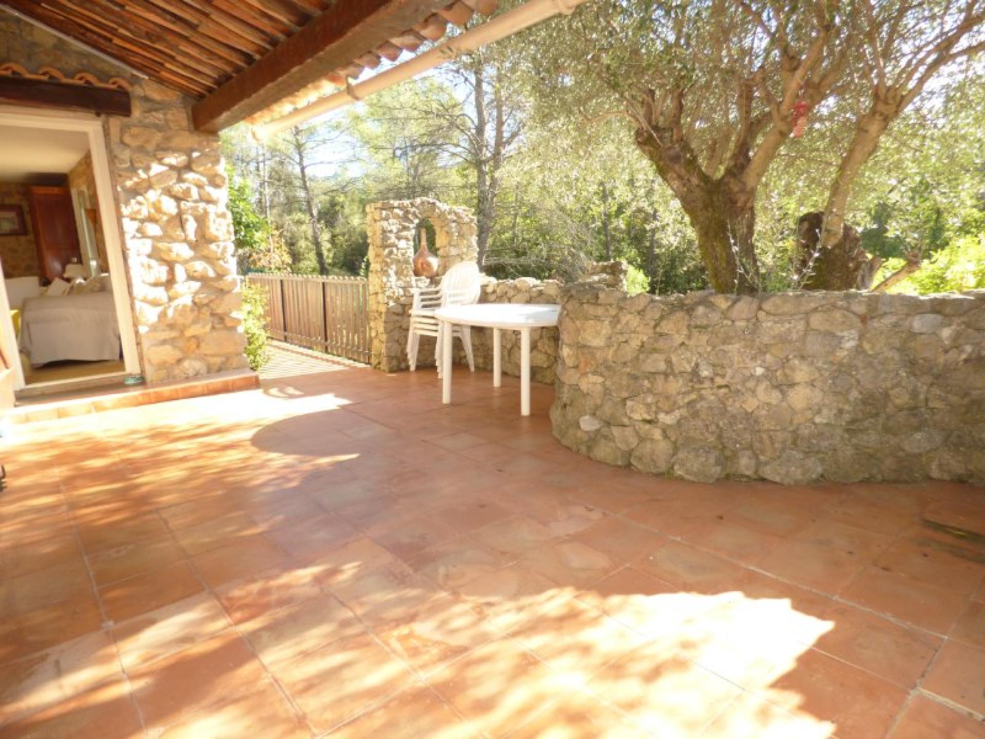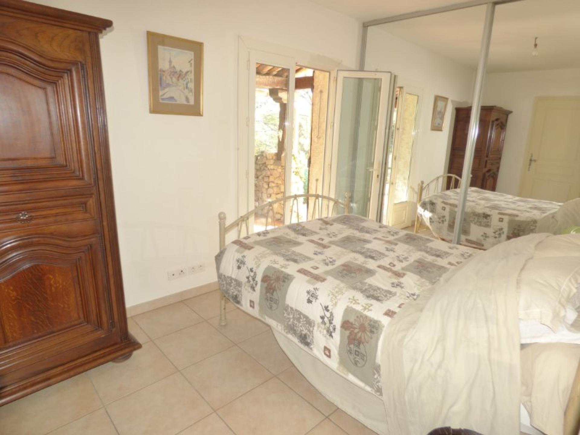 Exposée plein Sud et sans vis-à-vis, villa individuelle 4P d'environ 103 m² de plain-pied sur un terrain quasiment plat d'environ 2340 m² complanté d'oliviers centenaires et d'essences méditerranéennes et avec une piscine 8 m x 4 et son pool-house. Beau séjour avec cheminée et cuisine ouverte d'environ 56 m², 2 chambres avec placard et salle d'eau privative et un wc indépendant. Studio indépendant d'environ 18 m² avec kitchenette, salle d'eau et wc indépendant. Abri voitures et belle cave d'environ 20 m²