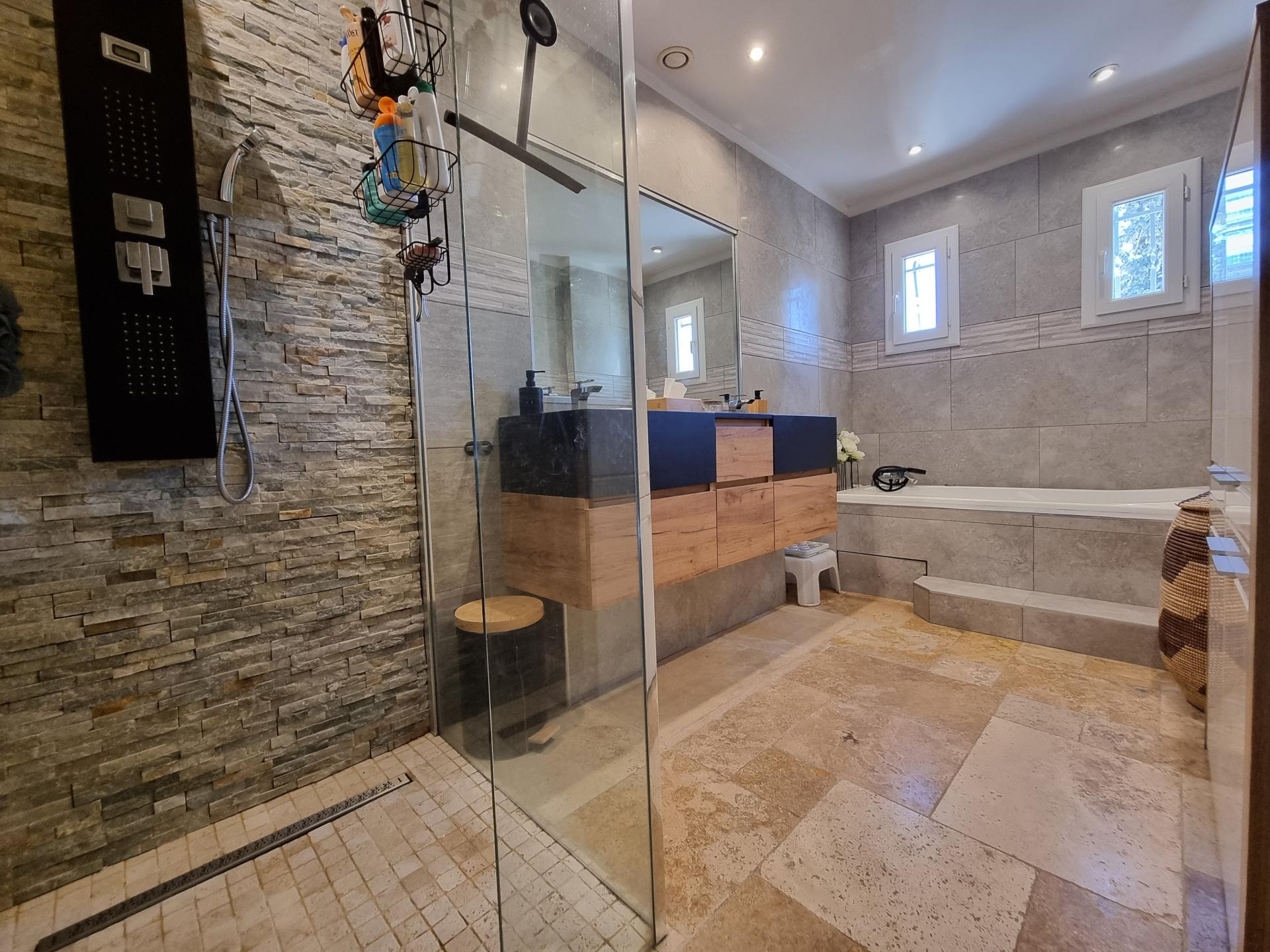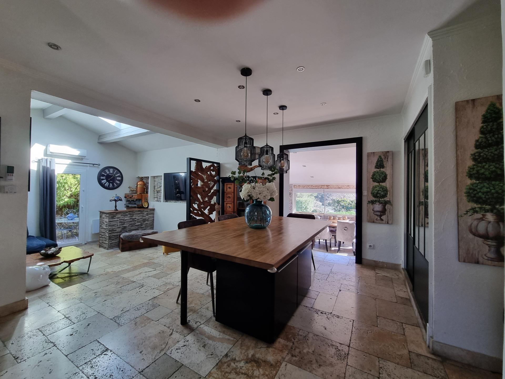 Venez découvrir, cette magnifique villa, avec un appartement indépendant. Elle comprend, un très grand séjour, sur cuisine ouverte de 60m², 2 salles de bain, avec baignoire et douche. 3 chambres avec placards. A l'extérieur, vous pourrez vous prélasser sur une terrasse orientée plein sud. Vous aurez l'opportunité d'appréciez, le jacuzzi, la piscine, et préparez de succulant repas dans la cuisine d'été, pour recevoir amis et famille. Vous aurez également, la possibilité de garé vos véhicules dans un double garage. LE PLUS: Double vitrage, clim réversible.