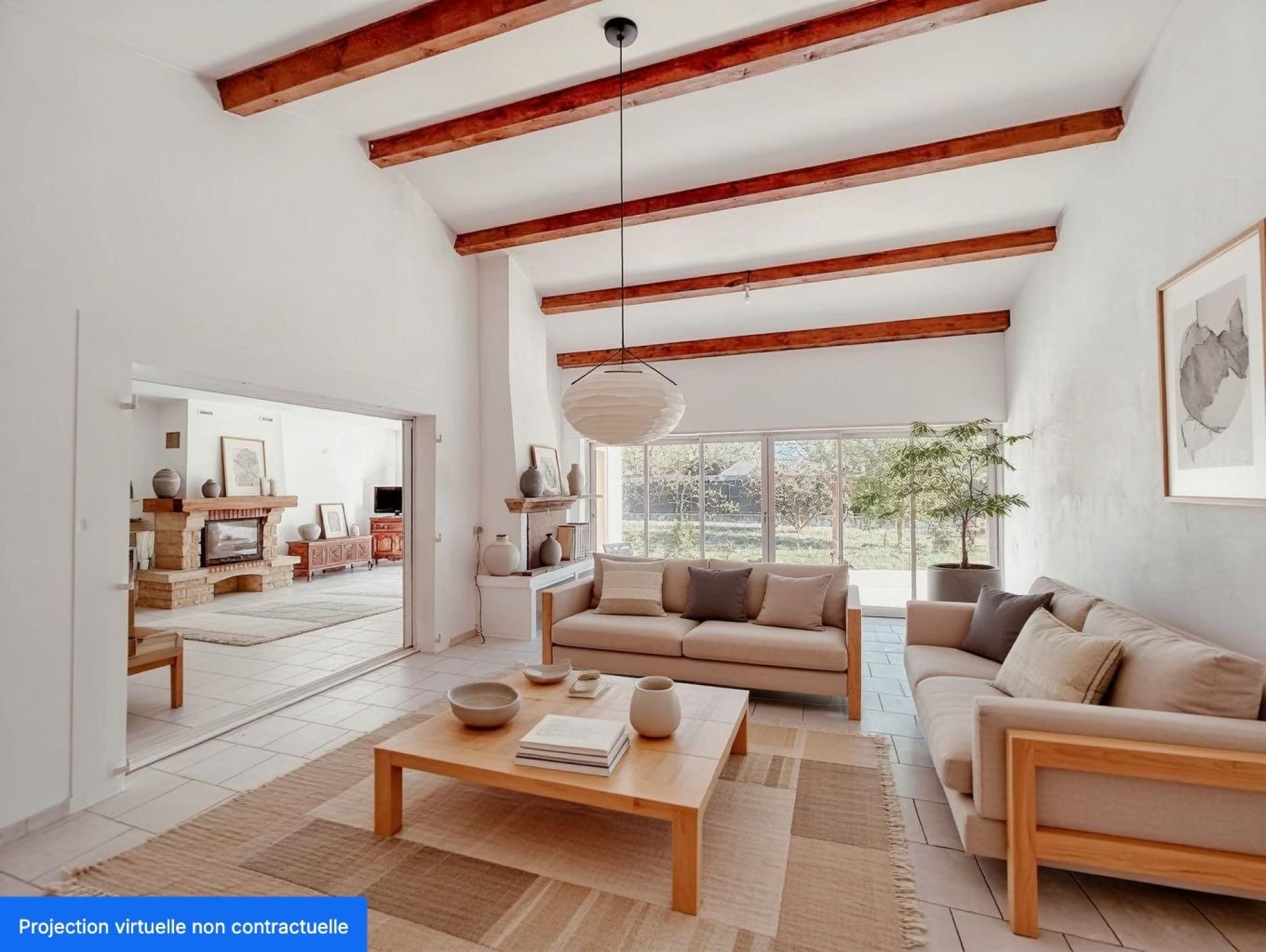 Idéalement située dans le charmant village de Ventabren, cette maison allie le calme de la campagne et la proximité des commodités à pied. Édifiée sur un magnifique terrain paysagé et arboré de plus de 3000 m², elle offre un cadre de vie exceptionnel, intime et verdoyant. D’une surface totale d’environ 220 m², la maison se compose de six chambres spacieuses, idéales pour accueillir famille et amis. Les pièces de vie s’ouvrent sur une terrasse exposée plein sud, baignée de lumière, qui surplombe une jolie piscine. Cette propriété séduit par ses volumes généreux, sa luminosité et son environnement privilégié, à seulement quelques minutes du centre du village et des accès routiers principaux. Un véritable havre de paix aux portes d’Aix-en-Provence. PHOTOS SUR DEMANDE