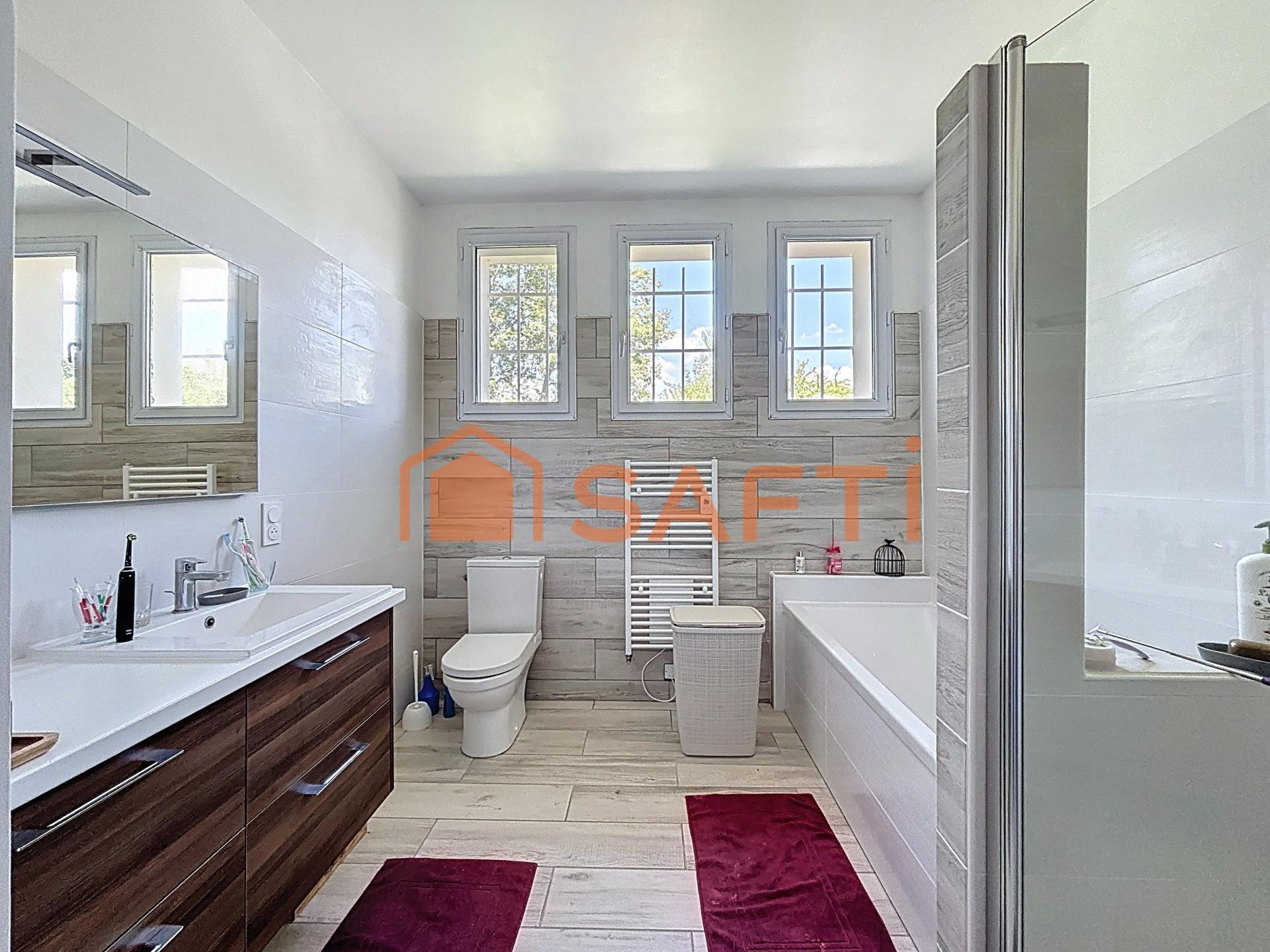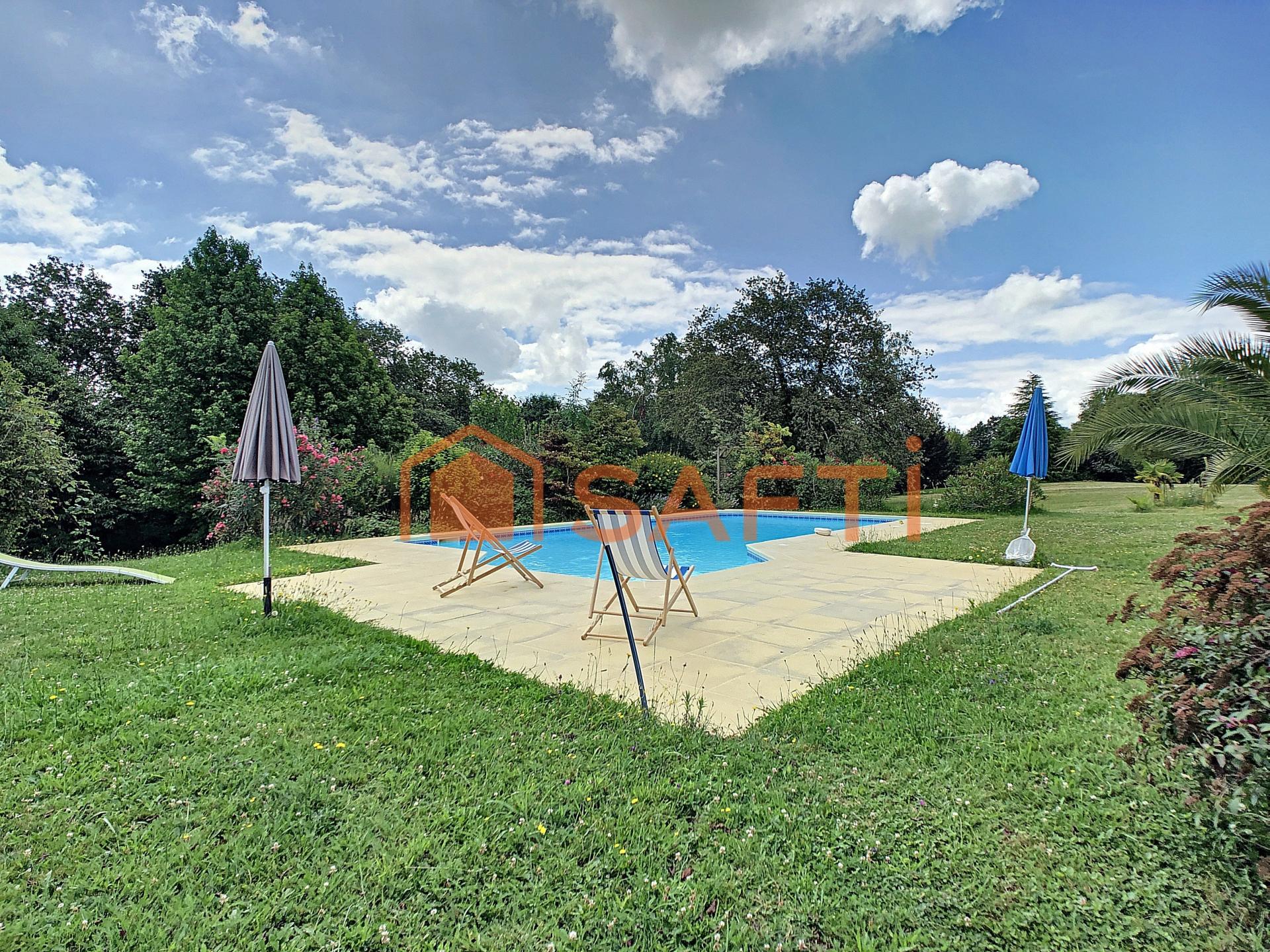 À l’abri des regards, dans un écrin de nature paisible, cette propriété offre un cadre de vie rare et harmonieux. Édifiée dans les années 1950 sur la plus haute colline du secteur, cette ancienne bâtisse à usage officiel se distingue par son architecture singulière et sa tour emblématique qui domine les paysages environnants. Rénovée dans les règles de l’art avec des matériaux de qualité, la maison développe environ 300 m² habitables. De plain-pied, vous découvrez une vaste pièce de vie conviviale avec cheminée, une cuisine contemporaine baignée de lumière, une salle à manger, trois chambres et un bureau. Une salle de bain moderne complète ce niveau. À l’étage, une chambre dispose de sa propre salle d’eau privative, tandis que le sommet de la tour dévoile une chambre atypique, elle aussi accompagnée de sa salle d’eau. Au total, ce sont trois salles de bain/salles d’eau dans la maison principale, qui s’ajoutent à une quatrième dans le gîte. C’est à l’extérieur que cette propriété déploie tout son charme : un terrain de 7,3 hectares, dont 1,7 hectare clos autour de la maison, vous garantit calme et intimité, sans voisinage direct. Deux terrasses invitent à la détente : l’une tournée vers la vue dégagée sur la campagne, l’autre aménagée comme un véritable espace de réception avec barbecue maçonné, four à pizza et coin repas ombragé. Une dépendance indépendante, aménagée en gîte fonctionnel, complète cet ensemble. Avec son espace de vie, son coin nuit, sa salle d’eau et ses équipements, elle constitue une véritable opportunité : accueillir famille et amis dans les meilleures conditions ou développer une activité de location saisonnière type gîte/Airbnb pour générer un revenu complémentaire. Le confort est au rendez-vous grâce au chauffage performant, à la climatisation réversible et aux panneaux solaires qui contribuent à réduire les charges énergétiques. Située à seulement 10 minutes de Garlin et de toutes ses commodités, cette propriété conjugue sérénité, caractère et praticité au quotidien. Un bien rare, où la nature, l’histoire et le confort moderne se rejoignent pour offrir une qualité de vie unique. Envie d’en savoir plus ? Je me tiens à votre disposition pour organiser une visite.