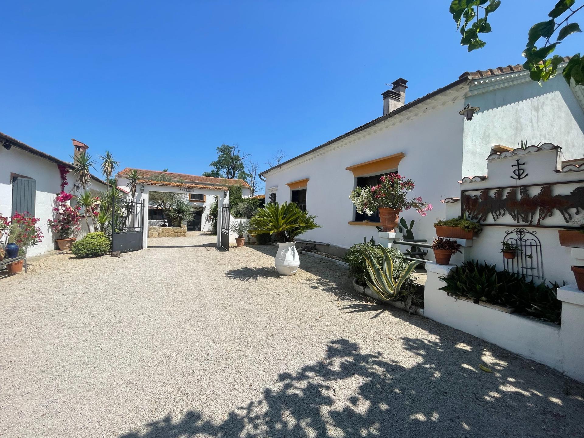 Je vous propose cette propriété idéalement située entre Montpellier et Nîmes à une demi-heure des plages. Cette propriété offre un cadre charmant dans un style andalous, idéal pour les amoureux de la nature, avec ses vastes 70170 m² de terrain. La propriété bénéficie d'un environnement paisible tout en étant proche des commodités locales. Vous retrouverez sur 575 m² de bâtis : une maison principale de 3 chambres de 155m2, 7 gîtes dont une maison de gardian restaurée, une arène, une écurie, une piscine avec pool house, 1 dépendance atelier, un espace de stockage. Le grand parking offre une grande praticité pour les résidents et les visiteurs, tandis que les espaces extérieurs permettent à chacun de profiter pleinement du climat méditerranéen dans l 'intimité. la propriété est composée de 21 pièces, comprenant 12 chambres, 9 toilettes et 10 salles de bain. L'aménagement généreux offre des espaces de vie confortables et fonctionnels, tandis que les équipements modernes garantissent un maximum de confort. Un bien d’exception alliant espace, confort, et caractère et pouvant permettre une activité de locations saisonnières ou annuelles.