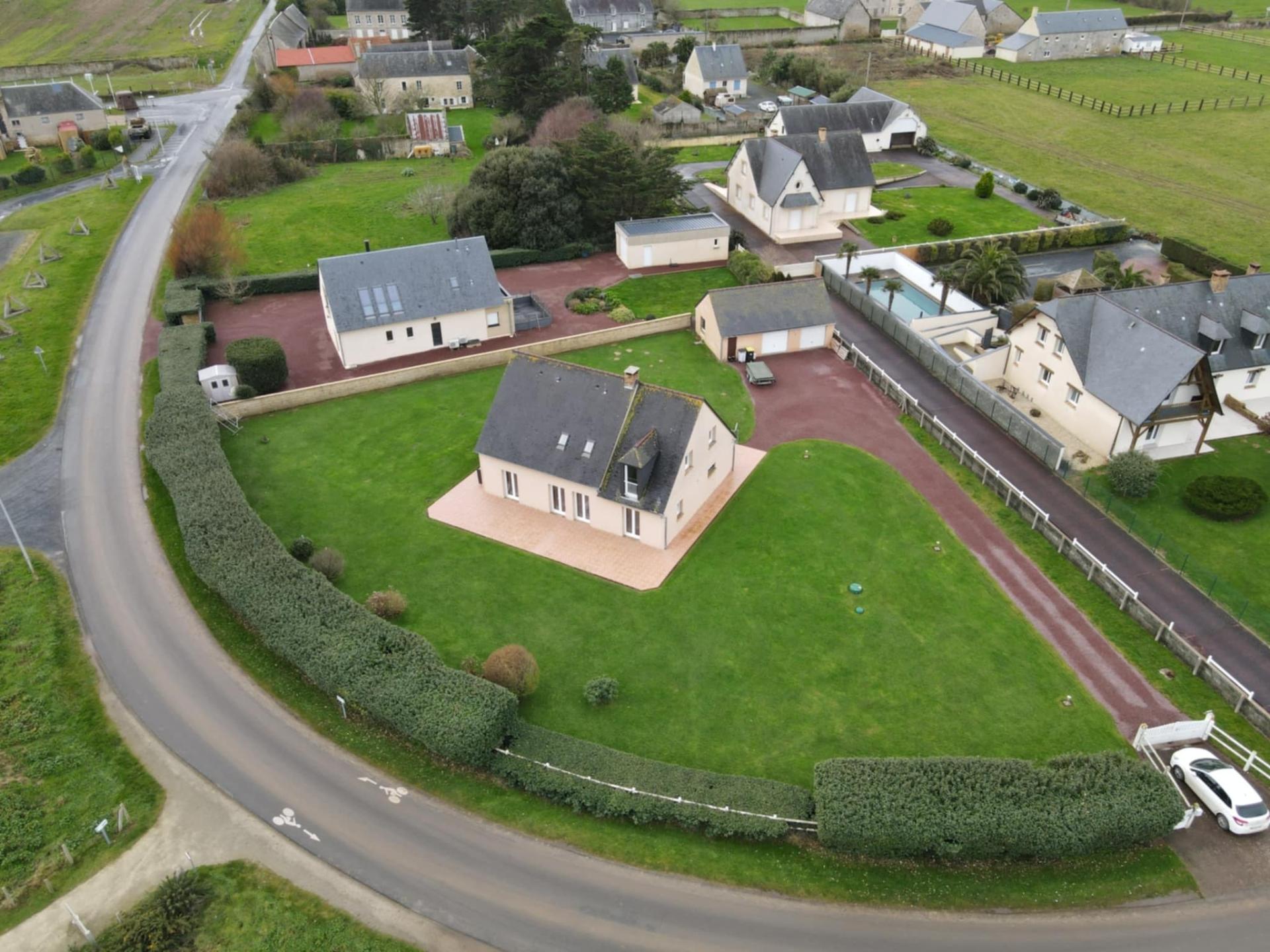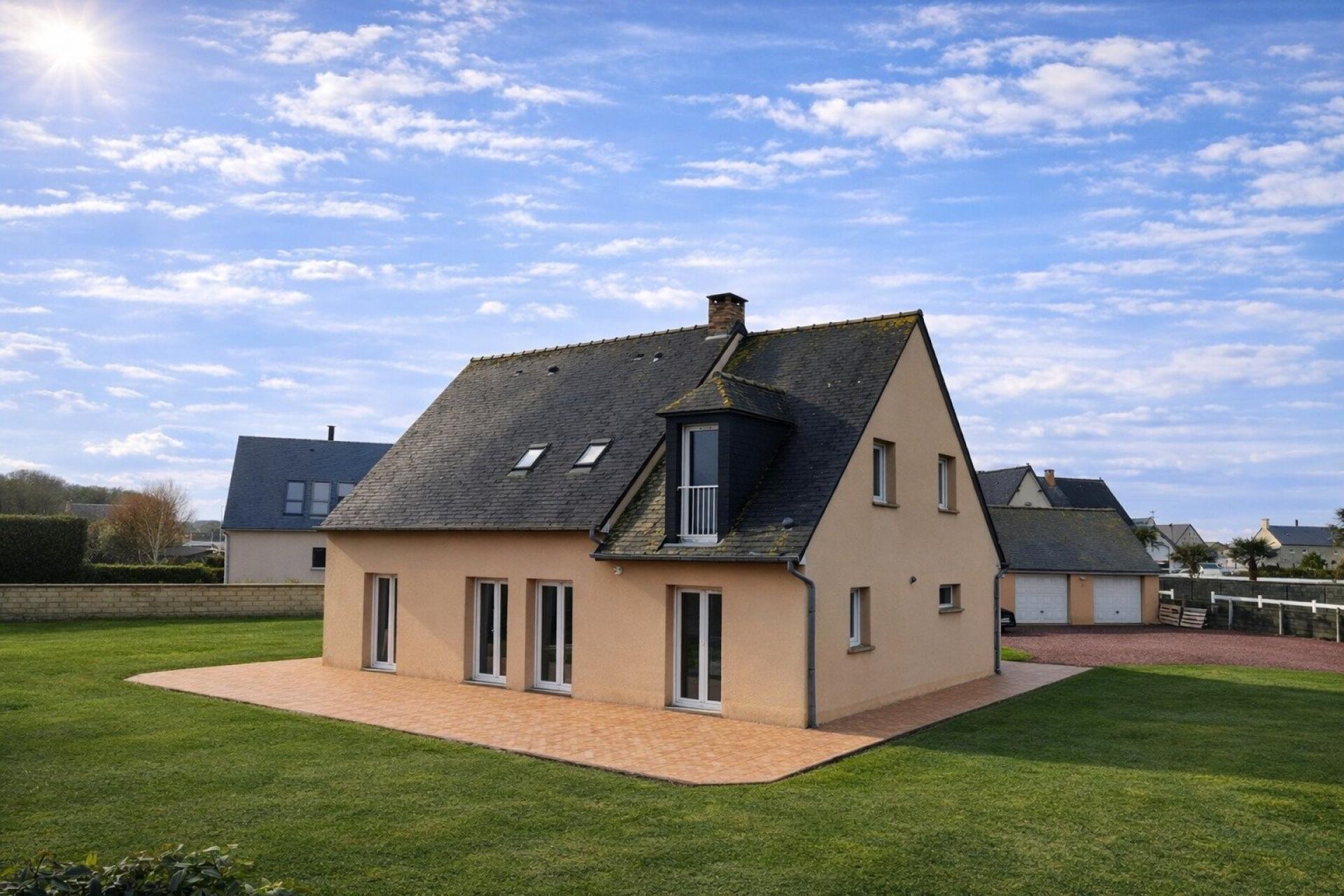 Un bien rare, où la mer s’invite dans chaque pièce. Située à Vierville-sur-Mer, cette superbe maison offre une vue mer imprenable depuis l’ensemble des pièces et des chambres, un privilège exceptionnel sur le secteur. Implantée sur un magnifique terrain de 2 157 m², cette propriété développe plus de 161 m² habitables, alliant volumes généreux, confort moderne et qualité de vie incomparable. Des espaces pensés pour le confort et la luminosité Salon / séjour / cuisine ouverte de 48 m², baigné de lumière, avec vue mer 4 chambres : 1 chambre en rez-de-chaussée de 13 m² Grande buanderie de 22 m², facilement transformable en chambre supplémentaire À l’étage : 3 chambres de 20 m², 16 m² et 12 m², avec toujours cette vue mer 2 salles d’eau neuves : une en rez-de-chaussée, une à l’étage Prestations de qualité Chauffage au sol pour un confort optimal Cheminée avec insert Diagnostic énergétique : C Double garage indépendant de 60 m², idéal pour véhicules, stockage ou projet annexe Un cadre de vie exceptionnel Environnement calme et privilégié Vue mer omniprésente Terrain spacieux offrant de multiples possibilités (jardin, détente, aménagements) Une maison unique, alliant vue mer, volumes, prestations et potentiel, idéale en résidence principale comme en maison secondaire de standing. À découvrir sans tarder. Coup de cœur assuré.