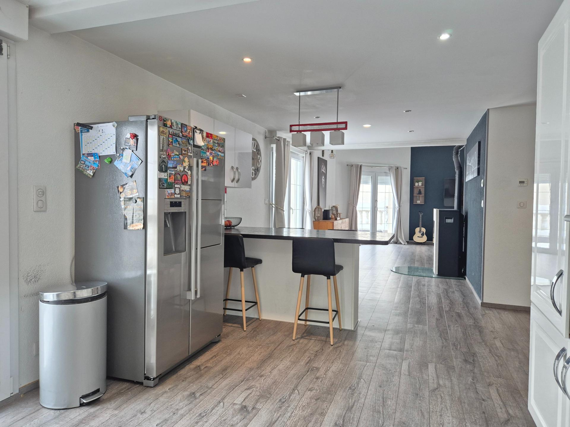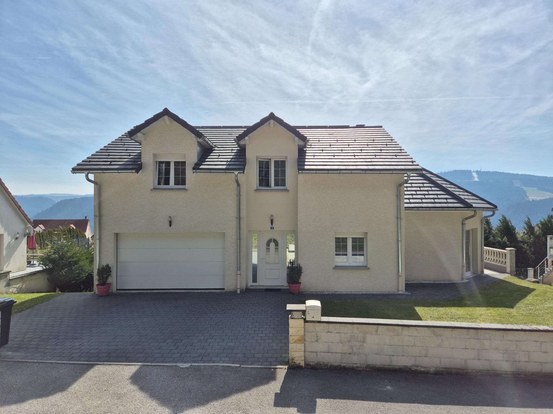 Venez découvrir ce petit bijou situé sur les hauteurs de Villers le Lac. Cette maison construite en 2012 vous offre une multitude d'aménagements répartis sur ses 270 m² (Carrez), 278 m² au sol et posée sur un terrain plat d'environ 854 m² (point important dans cette ville) *A commencer par son emplacement et orientation idéaux qui vous offrent tranquillité, vue et luminosité. *A continuer par ses volumes hors normes vous permettant de circuler et de profiter confortablement. *Et enfin, des espaces de vie, de nuit évidemment, mais également de loisirs, de détente et de bien-être. Elle se compose de: - Plain pied: 1 entrée/vestibule,1 espace de vie avec 1 espace cuisine entièrement aménagée et équipée, 1 coin "manger" et 1 vaste espace salon, le tout donnant accès à la terrasse (S), 1 bureau/chambre, 1 salle d'eau/WC - Etage: 1 mezzanine, 3 chambres, 1 salle de bain, 1 WC séparé, 1 dégagement - Rez de jardin: 1 magnifique espace de + de 100 m² comportant 3 cellules: 1 cellule "Home cinéma", 1 cellule "Sport" et 1 cellule "Jacuzzi/Sauna", 1 WC/lavabo séparé. De quoi se mettre et se remettre en forme après une bonne journée de travail ou durant le week-end. Le PLUS: Les panneaux photovoltaïques d'une puissance de 9 kWc permettant de réelles économies ainsi que d'obtenir un DPE en "D". A découvrir en photos, en visite virtuelle grâce au lien ci-dessus, ou lors d'une visite réelle.