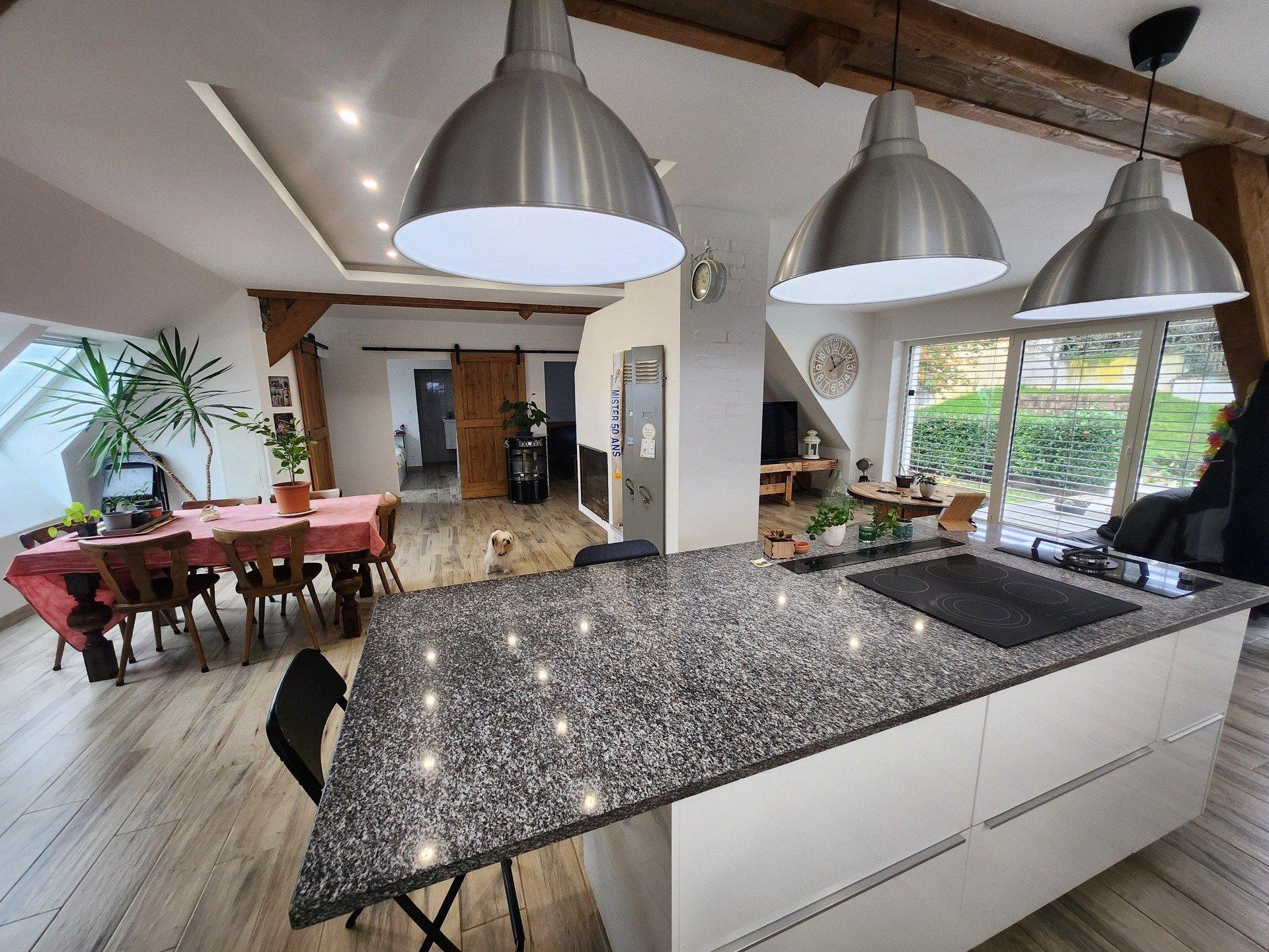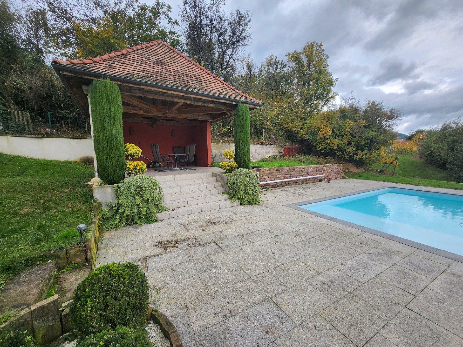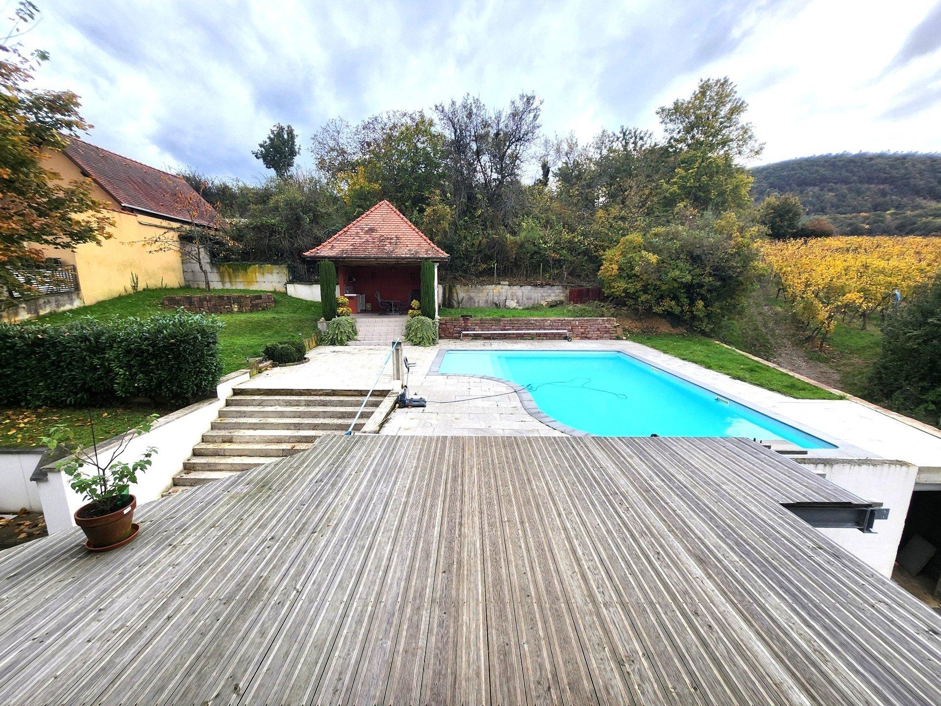 Située dans la charmante ville de Vœgtlinshoffen (68420), cette propriété de 189 m² sur 1055 m² de terrain arboré (possibilité bifamiliale) bénéficie d'un environnement paisible, idéal pour les amoureux de la nature. À proximité des vignobles alsaciens, les résidents pourront profiter de magnifiques paysages et de la tranquillité du cadre environnant. De plus, la ville privilégie un accès facile à diverses commodités telles que des commerces locaux et des écoles. Cette propriété propose un cadre de vie chaleureux et fonctionnel, garantissant un espace habitable généreux où il fait bon vivre au quotidien. RDC : une cuisine équipée ouverte sur une pièce de vie lumineuse de 32 m² donnant sur une terrasse, trois chambres spacieuses dont une avec dressing, une salle d’eau avec meuble double vasque et douche à l’italienne, WC séparé. Étage : une cuisine ouverte totalement équipée, une pièce de vie lumineuse de 70 m² donnant sur une belle terrasse, sa piscine et son polos, deux sympathiques chambres parentales avec dressing, salle d’eau et douche à l’italienne offrant tout le confort nécessaire, WC séparé. Extérieur : des vues dégagées à couper le souffle sur le vignoble, vue sur les trois châteaux et le château du Haut-Koenigsbourg. Au sous-sol : garage pour quatre véhicules, atelier, buanderie et son espace détente avec spa et sauna. Un bel espace extérieur pour la détente et les loisirs en plein air. Avec quatre places de parking, il y a amplement d'espace pour les véhicules des résidents et des visiteurs, assurant un stationnement pratique au quotidien.