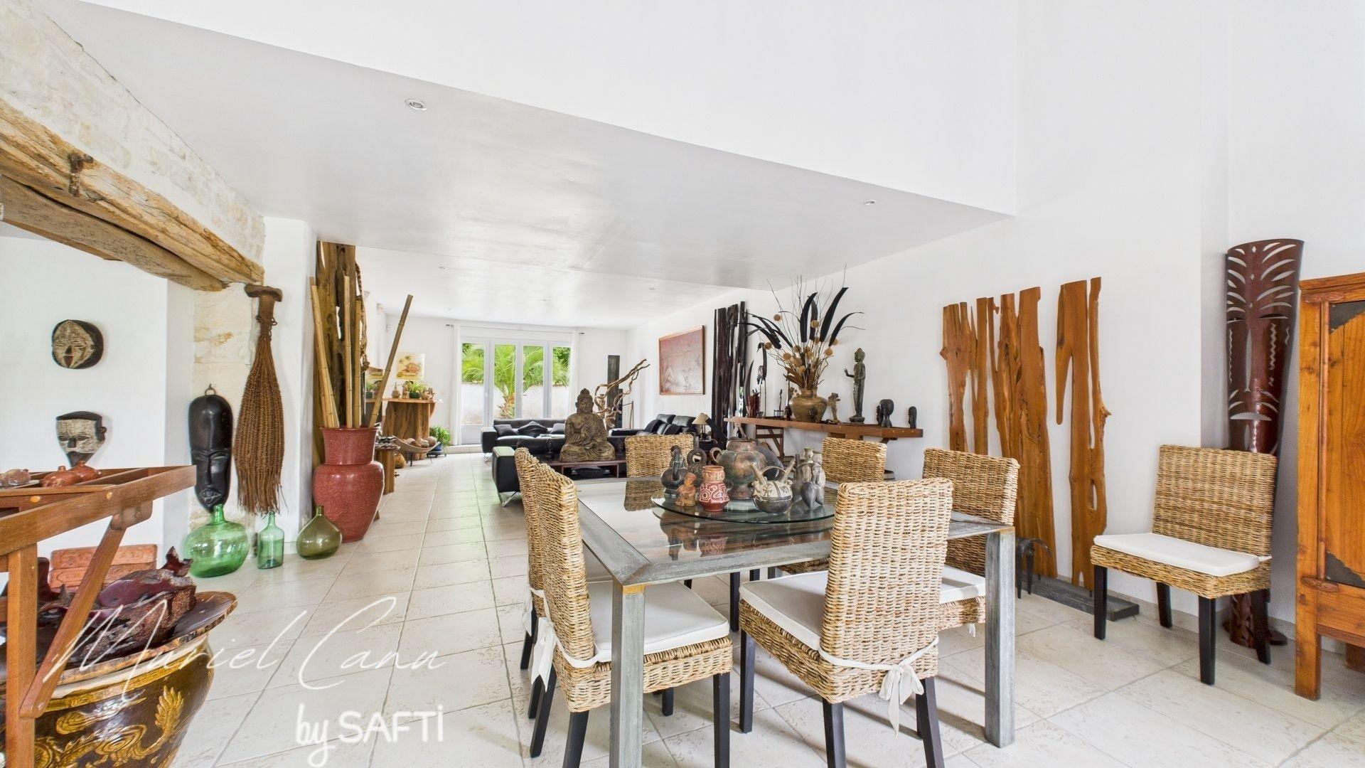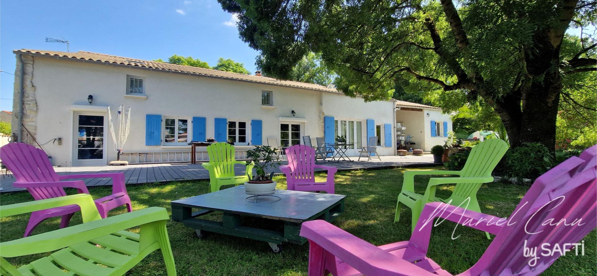 Située à Vouhé, cette propriété impressionne par l'étendue de son parc paysagé magnifiquement arboré. Cette belle maison charentaise de 284 m² allie le charme à l'authenticité et bénéficie d'une belle luminosité grâce à ses fenêtres traversantes. Dès l'entrée, le charme opère en pénétrant dans le hall d'accueil au plafond "cathédrale" qui mène à un vaste séjour de 57 m² et à une grande cuisine équipée indépendante de 40 m². Vous trouverez également une arrière-cuisine, un bureau, une chambre avec salle d'eau et wc privatifs. A l'étage, vous découvrirez 4 autres chambres, dont une suite parentale et une autre qui a été transformée en salle de détente. Un grand dressing vous est également proposé qui peut aussi devenir une chambre si besoin. Une salle de bain indépendante dessert également l'étage ainsi que des toilettes. A noter que le bien est pourvu d'un chauffage au sol par pompe à chaleur AIR/EAU. À l'extérieur, la propriété offre un grand espace pour le stationnement capable d'accueillir un camping-car ainsi qu'un garage double pouvant contenir deux voitures. Et en bonus, un bel atelier avec galetas complète le bien. Visite Virtuelle disponible sur demande.