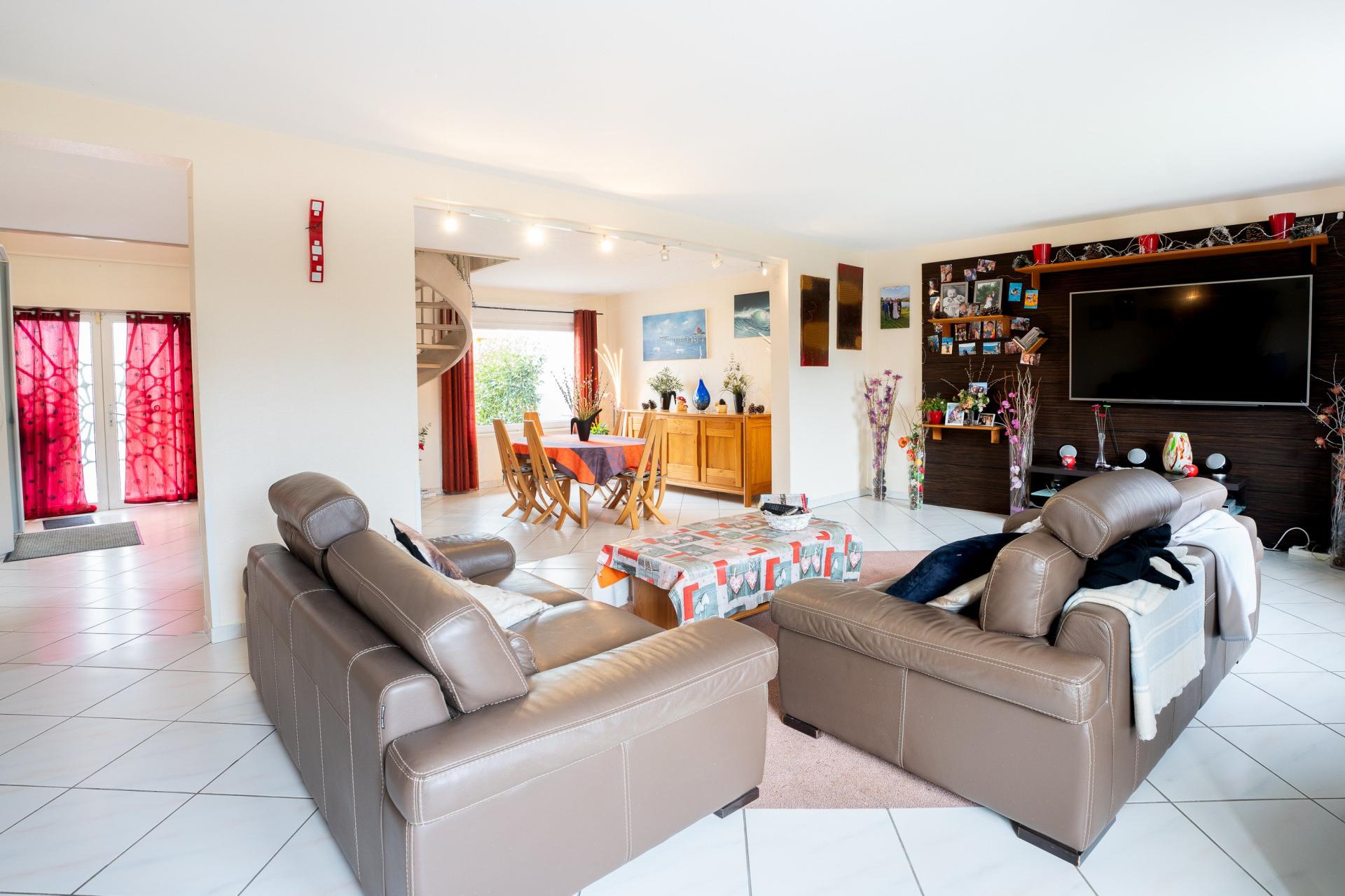 Découvrez votre havre de paix à Witternheim : une maison alliant charme et modernité. Située au calme, cette magnifique maison de 180 m² env. construite en 1991, vous offre un cadre de vie exceptionnel. Imaginez vous dans ce salon séjour lumineux. Les grandes baies vitrées baignent la pièce de lumière naturelle, offrant une vue dégagée et traversante sur un jardin verdoyant et la piscine. La cuisine équipée, indépendante, vous permettra de préparer de délicieux repas tout en profitant de la compagnie de vos proches. Un cellier buanderie attenant à la cuisine donne accès direct au garage. Les espaces de vie sont parfaitement agencés pour offrir un maximum de confort et de convivialité. Un bureau viendra completer ce niveau. A l'étage, une grand palier dessert 3 chambres spacieuses, une salle d'eau et une salle de bains. Cette maison est idéale pour une famille. Profitez également d'une terrasse pour vos moments de détente en plein air avec l'espace piscine, parfait pour les enfants et les amis. La maison dispose également de deux garages avec portes motorisées. Chauffage au sol par PAC air air (2023). Huisseries double vitrage pvc. Facade refaite en 2024. Aménagement exterieur (2021) Taxes foncières : 1017 € Accord pour du photovoltaique. Visite virtuelle sur demande